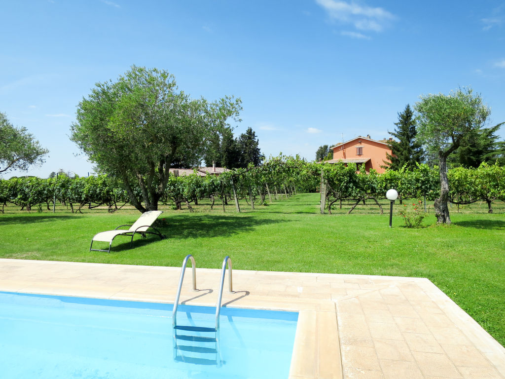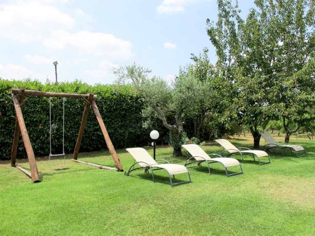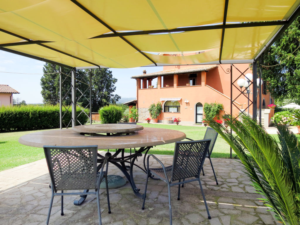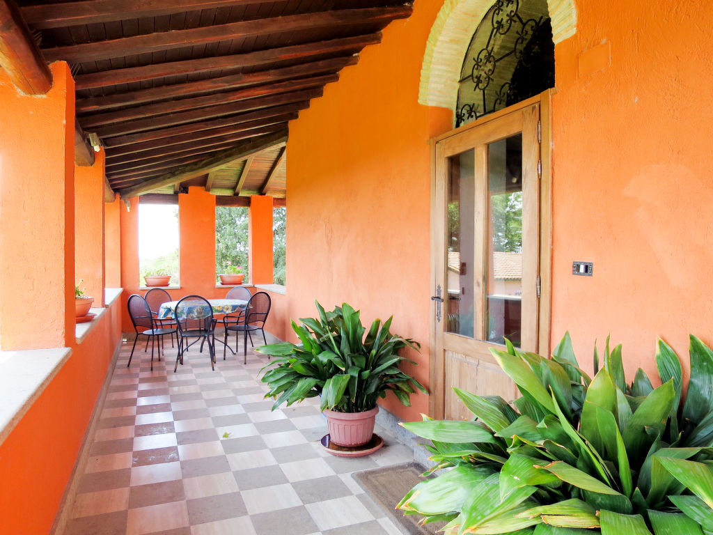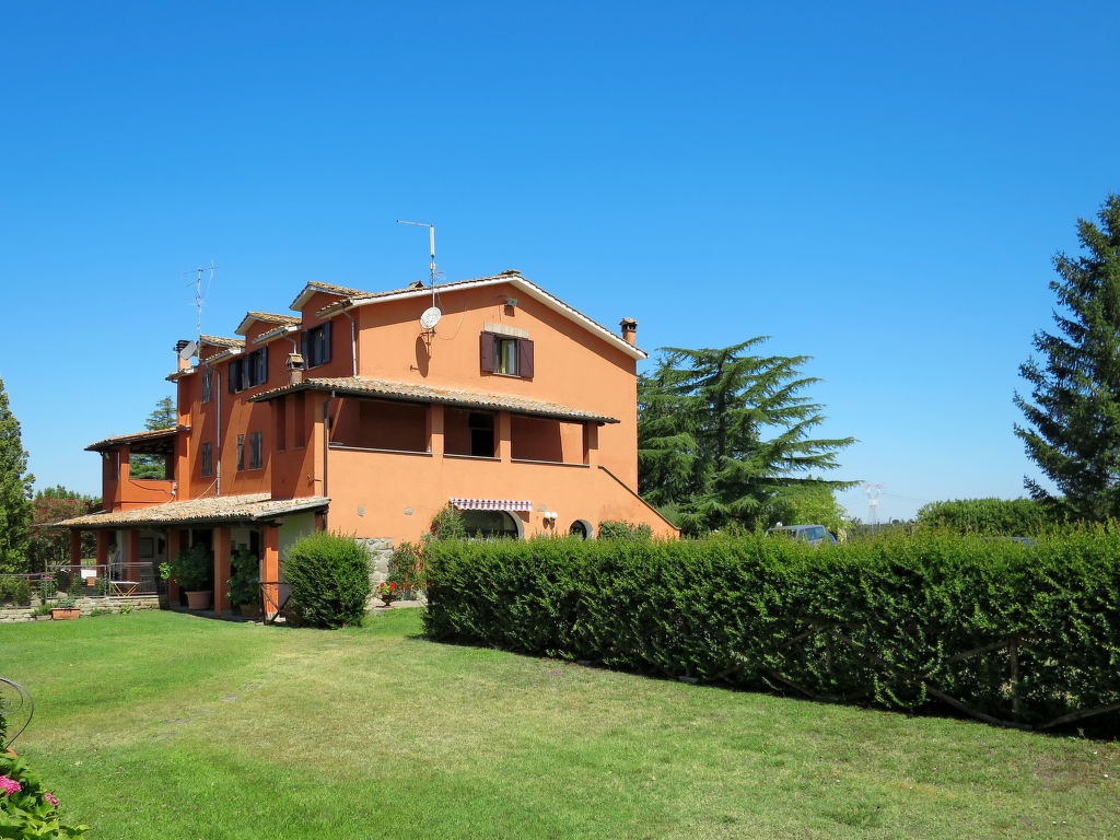 Landsitz "Santa Bruna". 15 km vom Zentrum von Orte, 30 km vom Zentrum von Viterbo, 70 km vom Zentrum von Roma, 25 km vom See, im Grünen. Zur Mitbenutzung: Grundstück 11 ha (eingezäunt). Zur Alleinbenutzung: Grundstück 5'000 m2, gepflegter Garten mit Rasen und Bäumen, Liegewiese, Schwimmbad (6 x 13 m, 140 - 300 cm tief, 18.05.-05.10.). Sitzplatz, Grill, Kinderspielplatz (Rutschbahn, Schaukel), Poolpflege durch den Besitzer/Gärtner. 3.7 km lange Zufahrt (4 km Naturweg). Treppenweg bis zum Haus. Parkplatz beim Haus. Einkaufsgeschäft 6 km, Supermarkt 9 km, Bahnstation "Orte" 15 km, Sandstrand 25 km, Freibad 15 km, Hallenbad 15 km. Golfplatz 33 km. Ab Hof Verkauf von bäuerlichen Produkten.