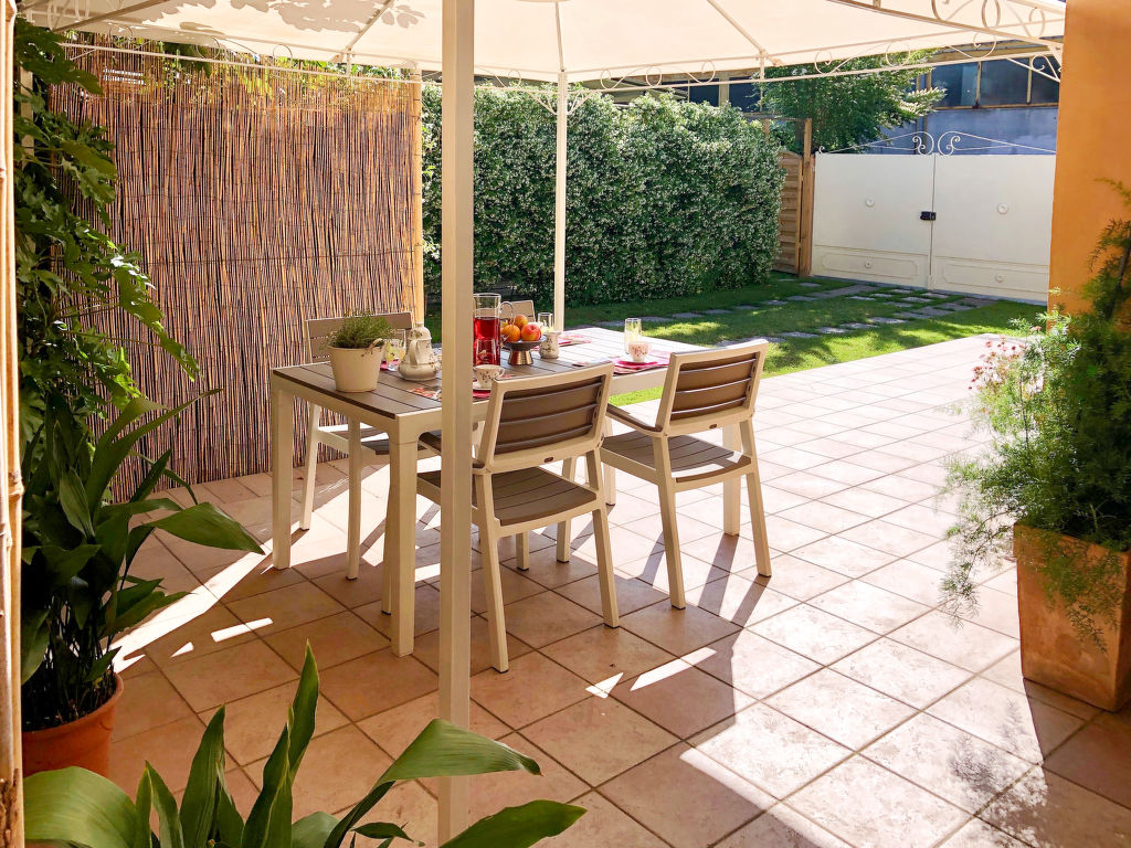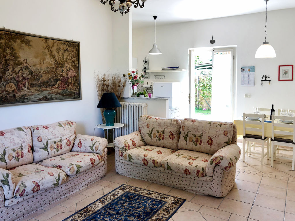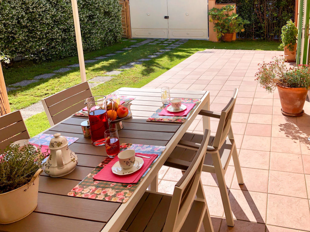 Doppelhaus "Le Camelie". 1.5 km vom Zentrum von Montignoso, 7 km vom Zentrum von Massa, 43 km vom Zentrum von Pisa, in einem Wohnquartier, 3 km vom Meer. Zur Alleinbenutzung: gepflegter Garten 100 m2 (eingezäunt) mit Rasen und Pflanzen. Terrasse, Gartenmöbel, Parkplatz auf dem Grundstück. Supermarkt 100 m, Bahnstation "Massa" 7 km, Sandstrand "Cinquale" 3 km. Bitte beachten: Der Besitzer wohnt im selben Haus.