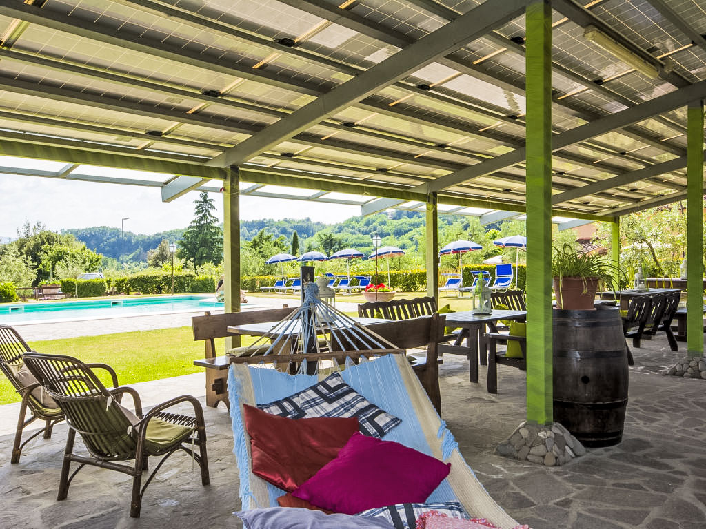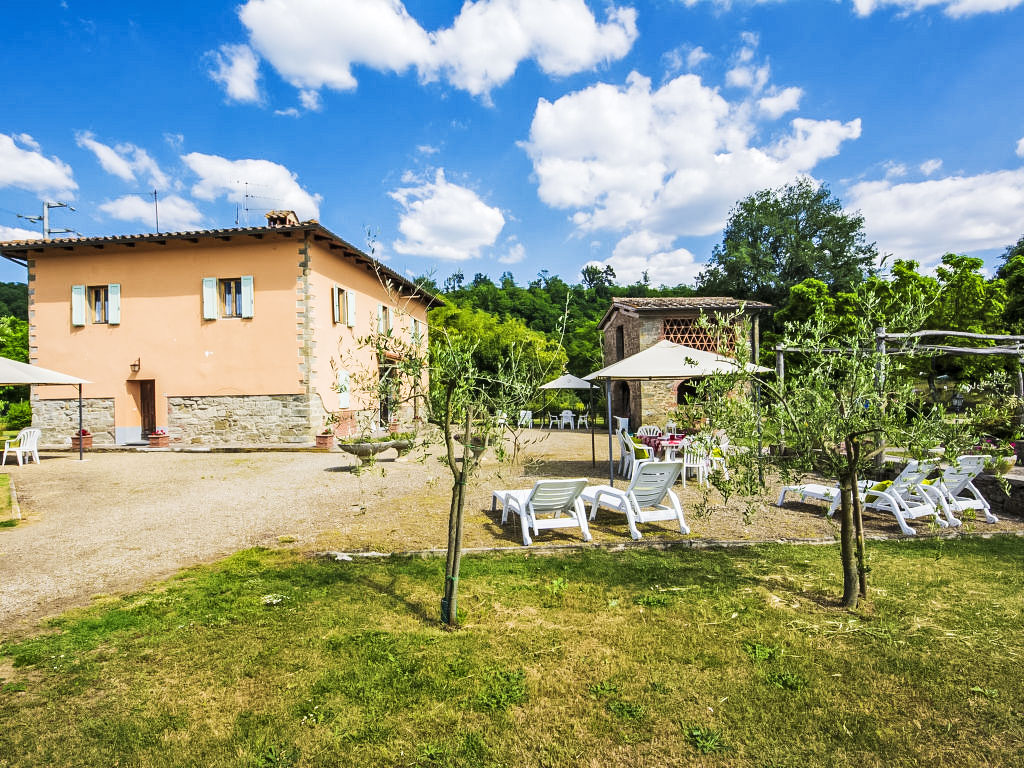 Das Anwesen liegt an der San Giovenale-Überlandtrasse, rund 4 km von Roggello entfernt, in idealer Ausgangslage, um die zahlreichen historischen Städte und Sehenswürdigkeiten zu besuchen. Das Ferien-Landgut besteht aus einer Gruppe von 4 Häusern mit 10 Wohnungen. Gäste können die Produkte des kleinen landwirtschaftlichen Betriebes direkt vor Ort kaufen. Sehenswürdigkeiten in der Umgebung: Kloster Vallombrosa, inmitten der alten Pinienwälder, Pieve di Cascia, ein Beispiel von romanischer Architektur, mit Werken von Masaccio, sowie die Kirche St.Agatha und Pitiana. In wenigen Fahrmin. Entfernung erreichen Sie "The Mall", ein Outlet-Mode-Einkaufszentrum. In der Toskana ist die Region von Roggello bekannt für das milde Klima und die leichte Brise. In der Region wird Olivenöl von bester Qualität hergestellt. - Internet WI-FI Verbindung nur im Poolbereich, nicht Verfuegbar in den Wohnungen. Bauerngut. 10 Wohnungen im Ferienhaus. 4 km vom Zentrum von Reggello, 35 km vom Zentrum von Firenze, 60 km vom Zentrum von Siena. Zur Mitbenutzung: Garten 3 ha (eingezäunt), Schwimmbad eingezäunt (7 x 14 m, 120 - 270 cm tief, saisonale Verfügbarkeit: 07.Mai.-24.Sep.). Aussendusche, Gartenmöbel, Kinderspielplatz. In der Anlage: Restaurant, Wireless LAN, Heizung vor Ort zu zahlen (01.11.-15.04.), Heizung nur verfügbar von 01.11. bis 15.04.. Parkplatz auf dem Grundstück. Einkaufsgeschäft 4 km, Lebensmittelgeschäft 1 km, Supermarkt 4 km, Bar 1 km, Bushaltestelle 1 km, Bahnstation "Figline Valdarno" 7 km. Nahe gelegene Sehenswürdigkeiten: Vallombrosa 14 km, Greve in Chianti 27 km, Gaiole in Chianti 32 km, Castelfranco di Sopra 12 km, Arezzo 40 km. Bitte beachten: Der Besitzer wohnt auf dem gleichen Grundstück. In diesem Haus sind weitere Ferienwohnungen mietbar.