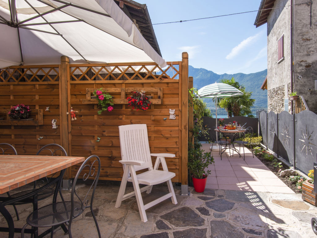 "Martino (DMA320)", 3-Zimmer-Wohnung 60 m2 auf 2 Stockwerken, Südlage. Renoviert im Jahre 2009, gemütlich eingerichtet: Obergeschoss: (Aussentreppe) Wohn-/Esszimmer mit offenem Kamin, Esstisch und Sat-TV. 1 Zimmer mit 1 franz. Bett (160 cm). Offene Küche (Backofen, Geschirrspüler, 4 Flammen, Toaster, Wasserkocher, Mikrowelle, Tiefkühler, elektrische Kaffeemaschine). Dusche/WC. G-Heizung. 2. Obergeschoss: 1 offenes Zimmer mit 1 Bett und 1 franz. Bett (180 cm), Dusche/WC. Terrasse überdacht. Terrassenmöbel, Liegestühle (2), Abstellkammer. Schöne Sicht auf den See und die Berge. Zur Verfügung: Waschmaschine, Bügeleisen, Kinderhochstuhl, Babybett. Internet (Wireless LAN, gratis). Bitte beachten: 2 Haustiere/Hunde erlaubt. Eigener Eingang. CIR: 013239-CNI-00051