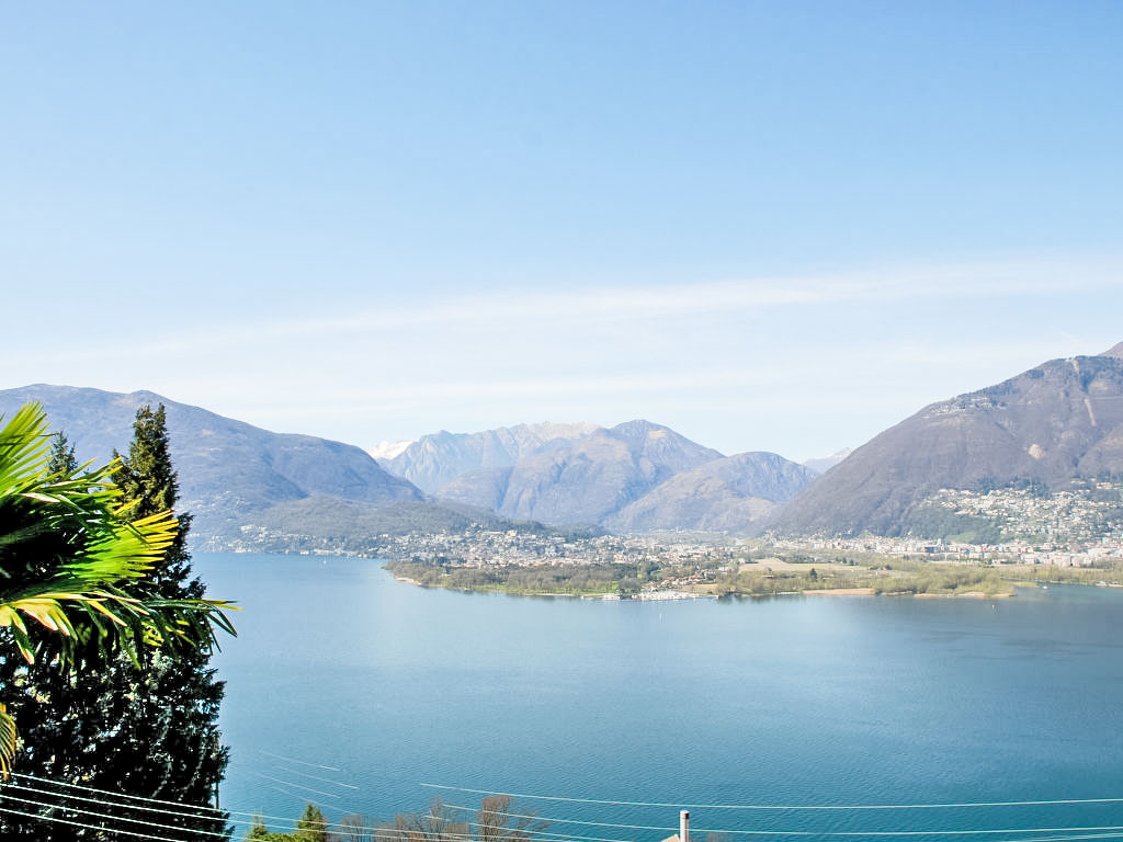 "App. 2", 3-Zimmer-Wohnung 90 m2 im 1. Stock. Geräumig und hell, komfortabel und gemütlich eingerichtet: Wohn-/Esszimmer mit Sat-TV, Flachbildschirm und Radio. Ausgang zur Terrasse, zum Gartensitzplatz. 1 Doppelzimmer mit 1 Doppelbett (2 x 90 cm, Länge 200 cm). 1 Zimmer mit 1 Doppelbett (2 x 90 cm, Länge 200 cm), 1 Wandklappbett (90 cm, Länge 200 cm). Küche (3 Kochplatten, Backofen, elektrische Kaffeemaschine). Ausgang zur Terrasse. Bad/WC. 2 Terrassen teilweise überdacht. Terrassenmöbel, Gartengrill, Liegestühle (2), Sitzplatz. Herrliche Panoramasicht auf den See, die Berge und die Landschaft. Zur Verfügung: Kinderhochstuhl, Babybett bis 2 Jahre, Haartrockner. Parkplatz (extra, überdacht). Geeignet für Familien.