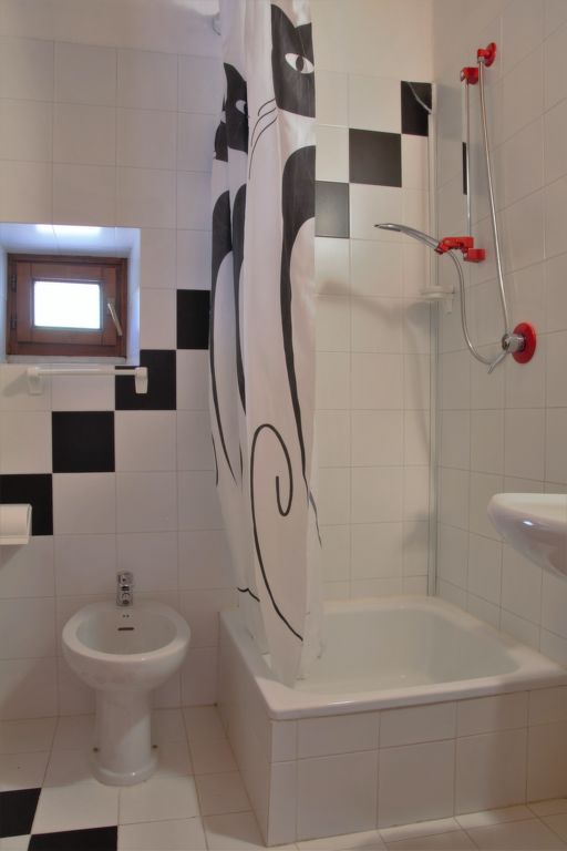1-Zimmer-Wohnung 51 m2 auf 2 Stockwerken im 1. Stock. Zweckmässig eingerichtet: Wohn-/Schlafzimmer mit 1 Diwanbett, 1 Doppeldiwanbett, Esstisch und Sat-TV. Ausgang zum Balkon. Offene Küche (4 Flammen, Mikrowelle, elektrische Kaffeemaschine). Obergeschoss: (geländerlose Treppe) abgeschrägte Galerie mit 1 Doppelbett. Dusche/Bidet/WC. G-Heizung, Klimaanlage. Balkon. Balkonmöbel. Sicht auf die Landschaft. Zur Verfügung: Waschmaschine. Bitte beachten: Nichtraucher-Unterkunft. Maximal 1 Haustier/Hund erlaubt.