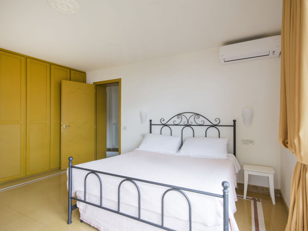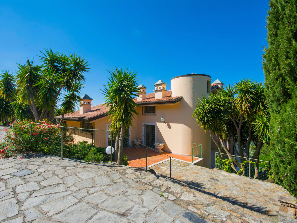 7-Zimmer-Villa 300 m2 auf 3 Stockwerken. Geräumig und hell, schön und stilvoll eingerichtet: 2 Doppelzimmer, jedes Zimmer mit Klimaanlage. 1 Zimmer mit Panoramafenster mit 1 Doppeldiwanbett, 1 Doppelbett, Dusche/Bidet/WC und Klimaanlage. Ausgang zur Terrasse. Bad/Bidet/WC, Dusche/Bidet/WC. Obergeschoss: Esszimmer 21 m2 mit Panoramafenster mit Esstisch. Ausgang zur Terrasse. Grosses Wohnzimmer 87 m2 mit Schiebetür, Panoramafenster mit TV (Flachbildschirm). Ausgang zur Terrasse. Grosse Küche 27 m2 (5 Kochplatten, Backofen, Geschirrspüler, Mikrowelle, elektrische Kaffeemaschine). Ausgang zum Garten. Bad. 2. Obergeschoss: 1 abgeschrägtes grosses Zimmer 30 m2 mit Schiebetür, Panoramafenster mit 1 Doppeldiwanbett, 1 Doppelbett, Bad/Bidet/WC und Klimaanlage. Ausgang zum Balkon. 3 Terrassen. Gartengrill (mobil). Sehr schöne Sicht auf das Meer. Zur Verfügung: Waschmaschine, Bügeleisen, Haartrockner. Internet (Wireless LAN, gratis). Parkplatz (eingezäunt). Bitte beachten: Nichtraucher-Haus. Maximal 3 kleine Haustiere/Hunde erlaubt. Das Anwesen erstreckt sich über drei Ebenen und ist in feinen neutralen Farben eingerichtet und verfügt über grosse Fenster, durch die das natürliche Licht die Räume durchflutet.