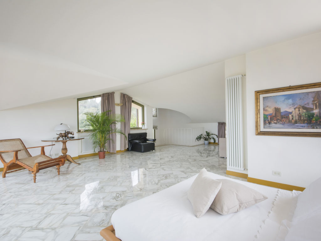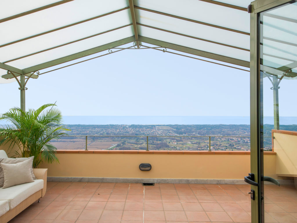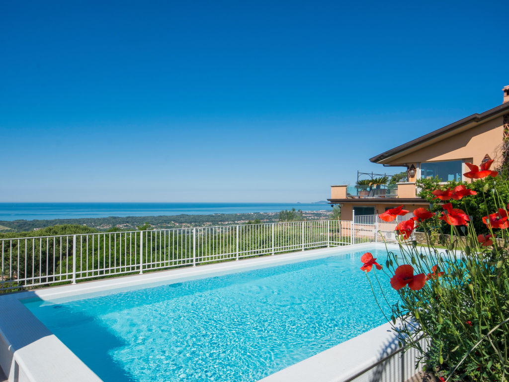 Die Villa Delfina befindet sich in erhöhter Lage, in den Hügeln oberhalb von Forte de Marmi, mit Blick auf die gesamte Küste. Aufgrund dieser strategischen Lage befindet sich das Villa in der Nähe aller berühmtesten Sehenswürdigkeiten der Versilia. Es liegt jedoch in einer ruhigen und privaten Gegend, umgeben von grünen Büschen, Sukkulenten und farbenfrohen Pflanzen. Schöne, alleinstehende Villa "Delfina". Im Weiler Palatina, 9 km vom Zentrum von Forte de Marmi, sonnige Lage auf einem Hügel, verkehrsberuhigte Zone, 8 km vom Meer. Zur Alleinbenutzung: Grundstück 5'000 m2 (eingezäunt), Terrassengarten mit Rasen und Pflanzen, Schwimmbad eingezäunt (12 x 8 m, 140 cm tief, 01.05.-15.10.). Aussendusche, Sitzplatz, Laube, Gartenmöbel. Im Hause: Internetzugang, Alarmanlage, Waschmaschine. Wäschewechsel (zusätzlich extra). Parkplatz beim Haus. Lebensmittelgeschäft 2 km, Supermarkt 5 km, Restaurant 1 km, Bahnstation 5 km, Sandstrand "Cinquale" 8 km, Thermalbad "San Carlo" 5 km, See Massaciuccoli 30 km. Jacht-Hafen 15 km, Golfplatz (18 Loch) 7 km, Segelschule 8 km, Tennis 8 km. Nahe gelegene Sehenswürdigkeiten: Terme della Versilia 8 km, Pietrasanta 9 km, Lucca 45 km, Pisa 50 km, Cinque Terre 60 km, Firenze 90 km. Dieses Haus ist komplett mit allen Annehmlichkeiten ausgestattet und verfügt über einen herrlichen Garten mit Schwimmbad und einem möblierten Bereich mit Pavillon und Sonnenliegen, wo sich die Gäste entspannen und den spektakulären Meerblick geniessen können.