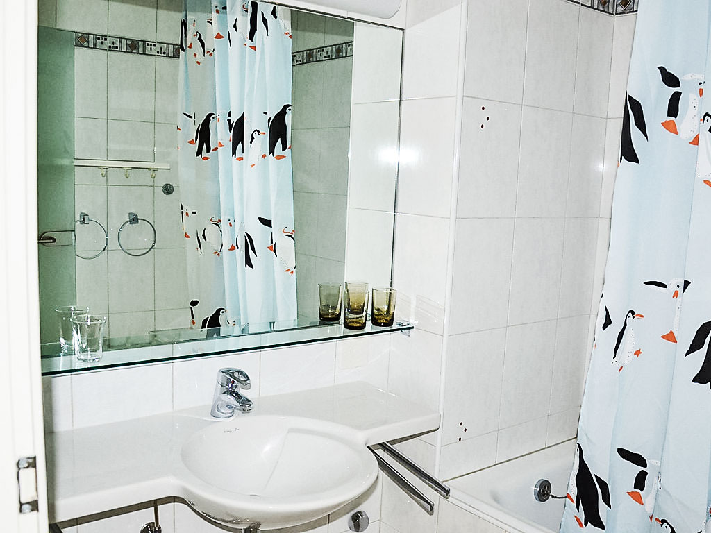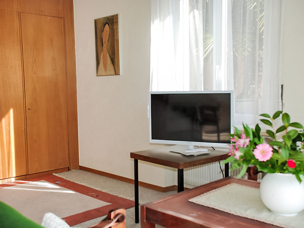 4-Zimmer-Wohnung 88 m2 im 1. Stock. Geräumig und hell, zweckmässig und gemütlich eingerichtet: offenes Wohn-/Schlafzimmer mit 2 Wandschrankbetten (90 cm, Länge 200 cm), Kabel-TV, Flachbildschirm und Radio. Ausgang zum Balkon. Esszimmer mit Schiebetür. Ausgang zum Balkon. 1 Doppelzimmer mit 1 Doppelbett (2 x 90 cm, Länge 200 cm). 1 Zimmer mit 2 Betten (90 cm, Länge 200 cm). Küche (3 Kochplatten, Backofen, Geschirrspüler, elektrische Kaffeemaschine, Kapseln für die Kaffeemaschine (Chicco d’oro) extra) mit kleiner Bar. Bad, sep. WC. Heizung. Balkon. Balkonmöbel. Sicht auf die Berge und die Landschaft. Bitte beachten: Nichtraucher-Unterkunft. Maximal 1 Haustier/Hund erlaubt.