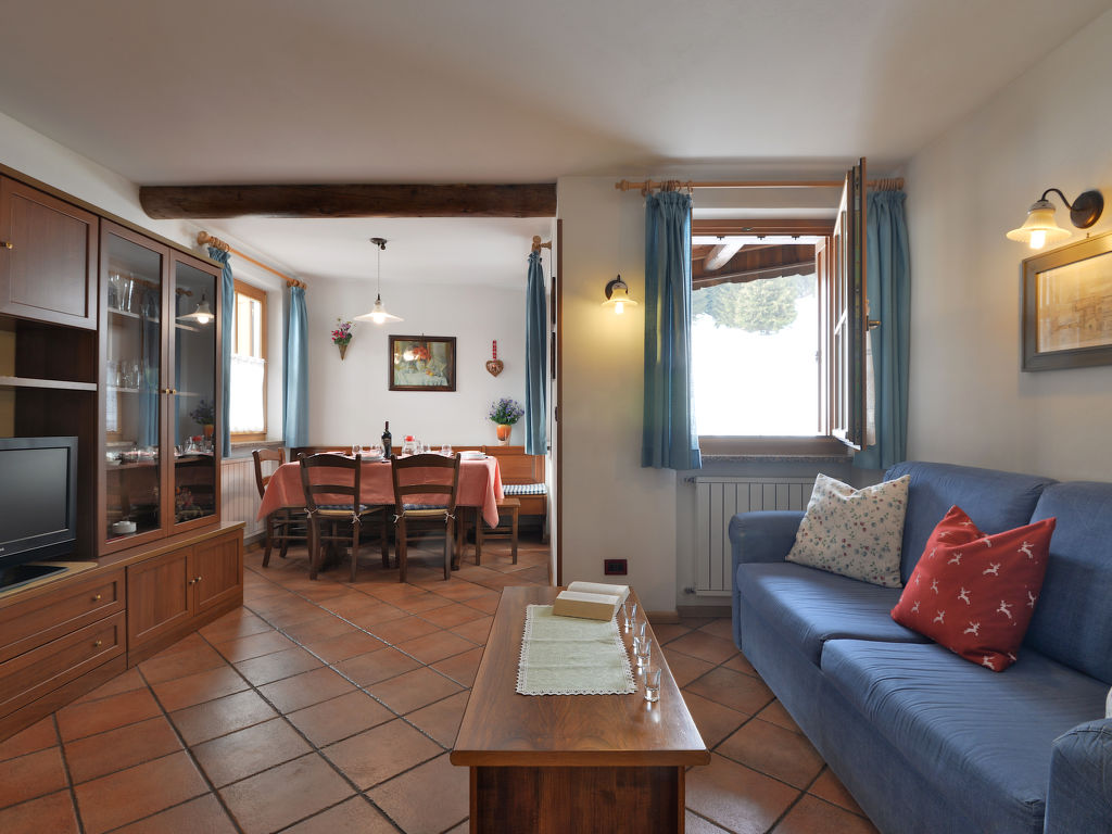 "Degasper (SOF787)", 6-Zimmer-Wohnung 130 m2 auf 3 Stockwerken, im erhöhten Erdgeschoss. Mit viel Holz eingerichtet: Wohn-/Schlafzimmer mit 1 Doppeldiwanbett, Esstisch und Sat-TV. Offene Küche (1 Kochplatte, Backofen, 3 Flammen) mit Essecke. Bad/WC. Unteres Geschoss: (Aussentreppe) 1 Zimmer mit begehbarer Kleiderschrank mit 2 Betten (80 cm). 1 Zimmer mit 2 Betten (80 cm). Wohnzimmer mit Esstisch und Sat-TV. Offene Küche (Backofen, Geschirrspüler, 4 Flammen, Wasserkocher, Mikrowelle, elektrische Kaffeemaschine) mit Essecke. Bad/WC, Dusche/WC. Obergeschoss: 2 Zimmer, jedes Zimmer mit 2 Betten (80 cm). Dusche/WC. Schöne Sicht auf die Berge. Zur Verfügung: Waschmaschine, Safe, Babybett. Internet (Wireless LAN). Bitte beachten: Nichtraucher-Unterkunft. Eigener Eingang. Keine interne Verbindung zwischen den separaten Wohneinheiten. CIPAT: 022176-AT-056876, 022176-AT-065887