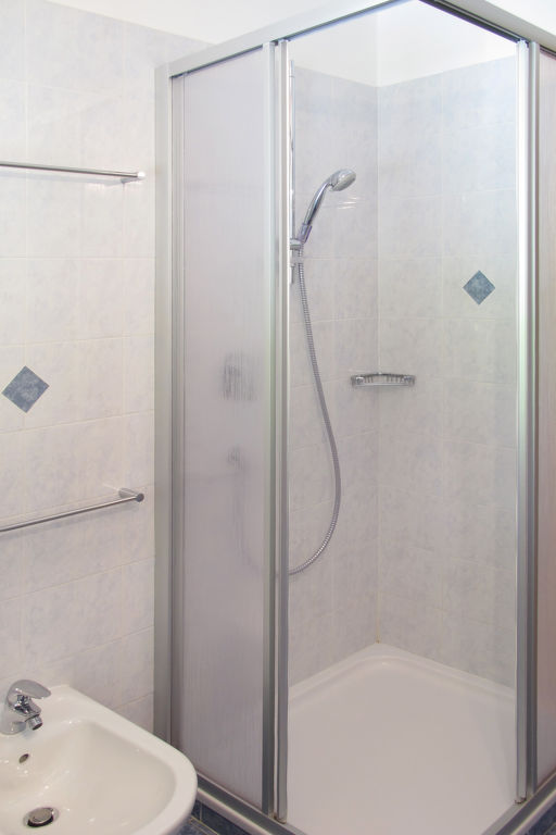 3-Zimmer-Wohnung, 2. Etage, ca. 48 m². Separater Zugang über Außentreppe. Wohn-/Schlafraum mit Bettcouch, Essplatz (Eckbank), Küchenzeile (4 Ceranfelder, Backofen, Geschirrspüler, Kühlschrank, Kaffeemaschine, Wasserkocher). Doppelzimmer. Zweibettzimmer (Betten zusammenstellbar). Dusche/WC.