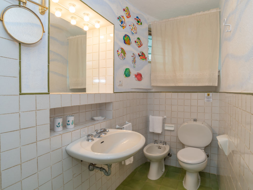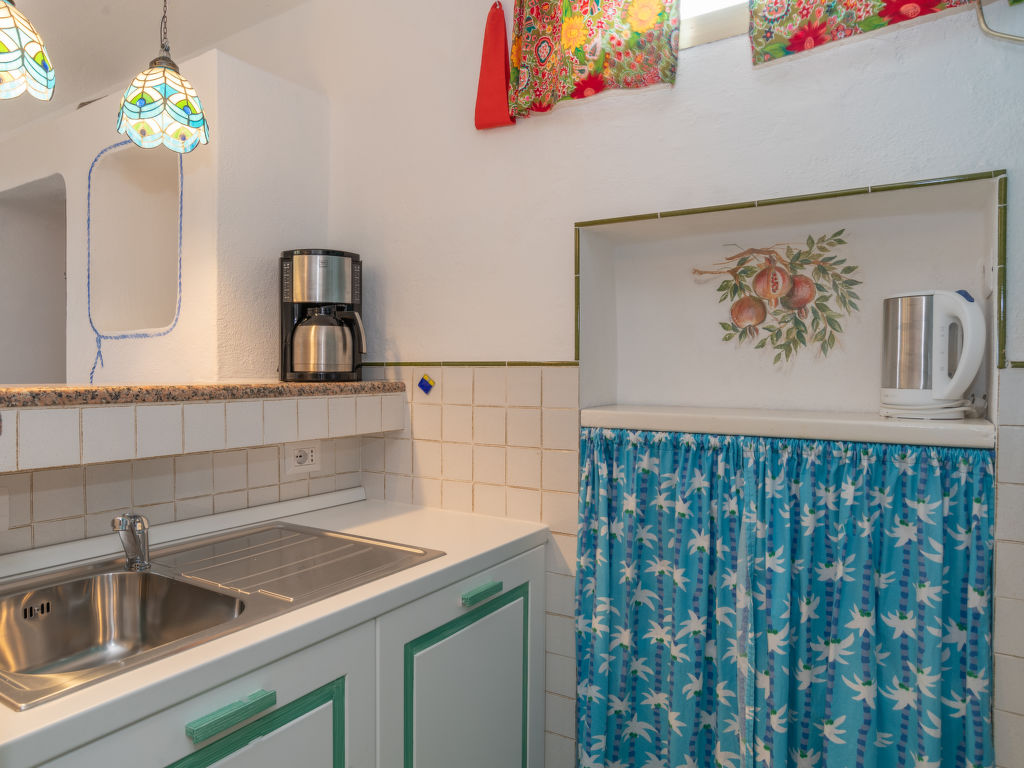 "Casa del Sole", 2-Zimmer-Reihenhaus 38 m2, im erhöhten Erdgeschoss. Schön und romantisch eingerichtet: Wohn-/Schlafzimmer mit 1 Diwanbett, 1 Ausziehbett und offenem Kamin (nur Deko), Esstisch, Bar und TV. Ausgang zur Terrasse. 1 Zimmer mit 1 Doppelbett. Kleine, offene Küche (Backofen, Geschirrspüler, 4 Flammen, Tiefkühler) mit Bar. Dusche/WC. Holzheizung. Terrasse 10 m2, überdacht. Terrassenmöbel, Abstellkammer. Schöne Sicht auf das Meer. Zur Verfügung: Waschmaschine, Babybett. Bitte beachten: Nichtraucher-Unterkunft. 1 Haustier/Hund erlaubt. IUN:Q2303