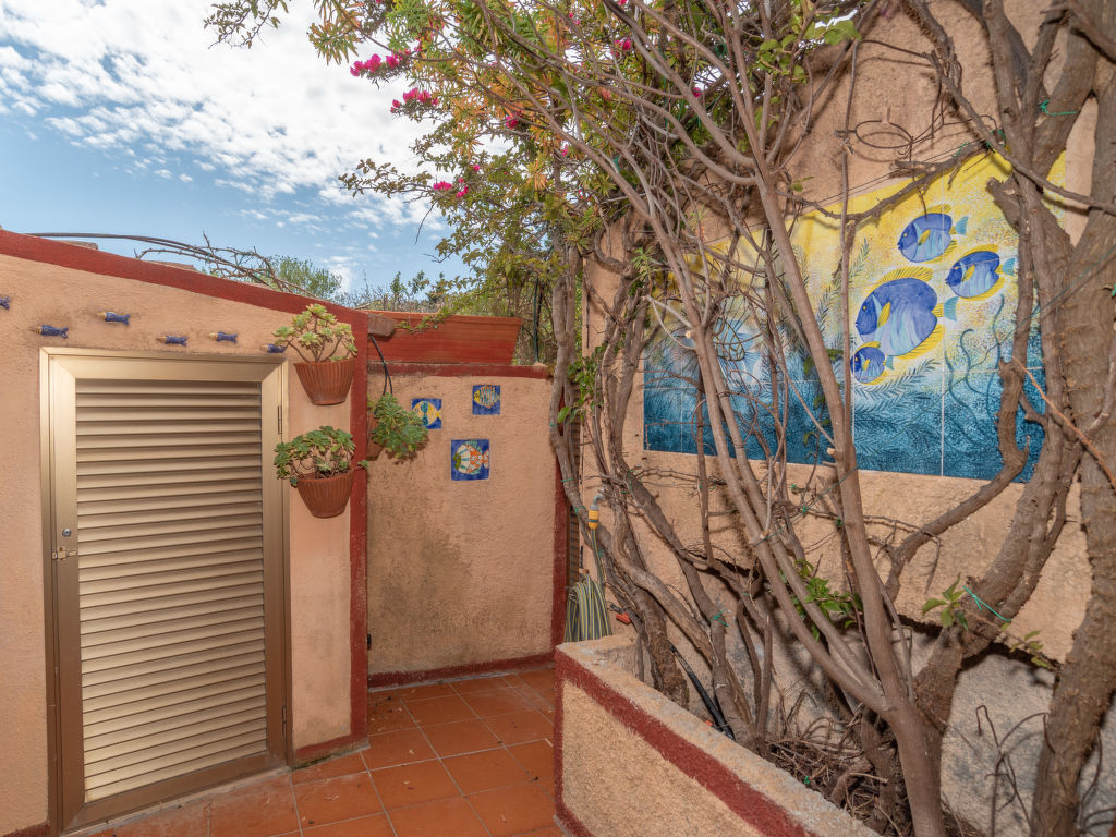 Ferienanlage. 25 Wohnungen in der Residenz. 5 km vom Zentrum von Palau, am Ortsrand, 1.5 km vom Zentrum von Porto Rafael, am Hang, 500 m vom Meer. Zur Mitbenutzung: naturbelassenes Grundstück mit Pflanzen und Bäumen. Zur Alleinbenutzung: Aussendusche. Abstellraum vorhanden. 3 km lange schmale Zufahrt. 100 m Treppenweg (8 Stufen) bis zum Haus. Parkplatz in 100 m. Supermarkt 4 km, Sandstrand 500 m. Jacht-Hafen 500 m. Bitte beachten: Fahrzeug empfohlen.
