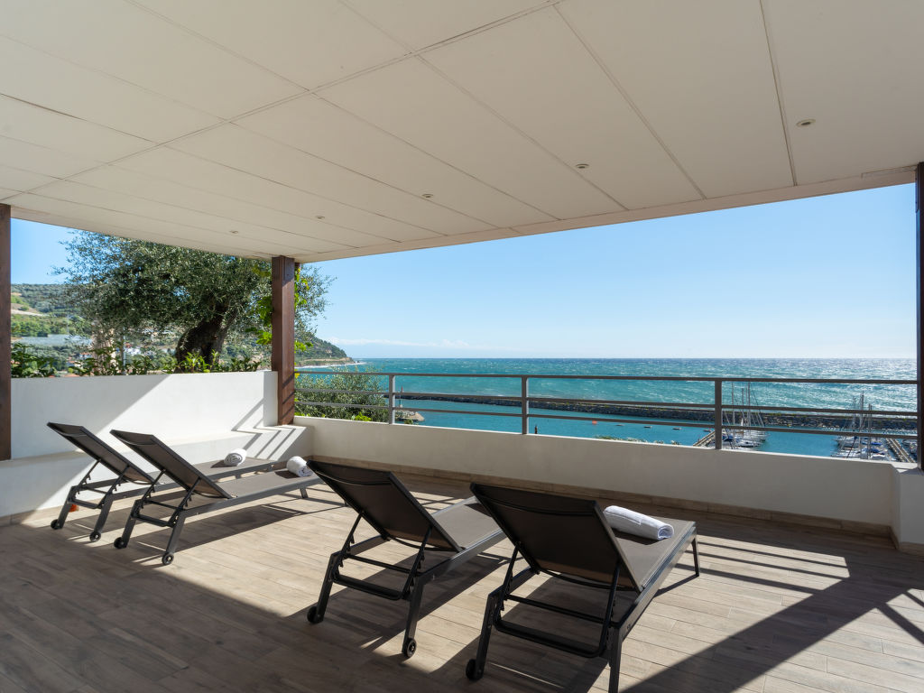 "Passiflora (SLR400)", 2-Zimmer-Bungalow 28 m2. Hell, modern eingerichtet: 1 Zimmer mit 1 franz. Bett (160 cm). Ausgang zur Terrasse. Wohnküche (4 Flammen, Toaster, Mikrowelle, Tiefkühler, elektrische Kaffeemaschine) mit Esstisch. Ausgang zur Terrasse. Dusche/WC. Heizung, Klimaanlage. Terrasse. Terrassenmöbel, Liegestühle (2). Sehr schöne Sicht auf das Meer. Zur Verfügung: Kinderhochstuhl, Babybett. Parkplatz (1 Auto). Bitte beachten: Nichtraucher-Unterkunft. Maximal 1 Haustier/Hund erlaubt. CITR: 008054-CAM-0002