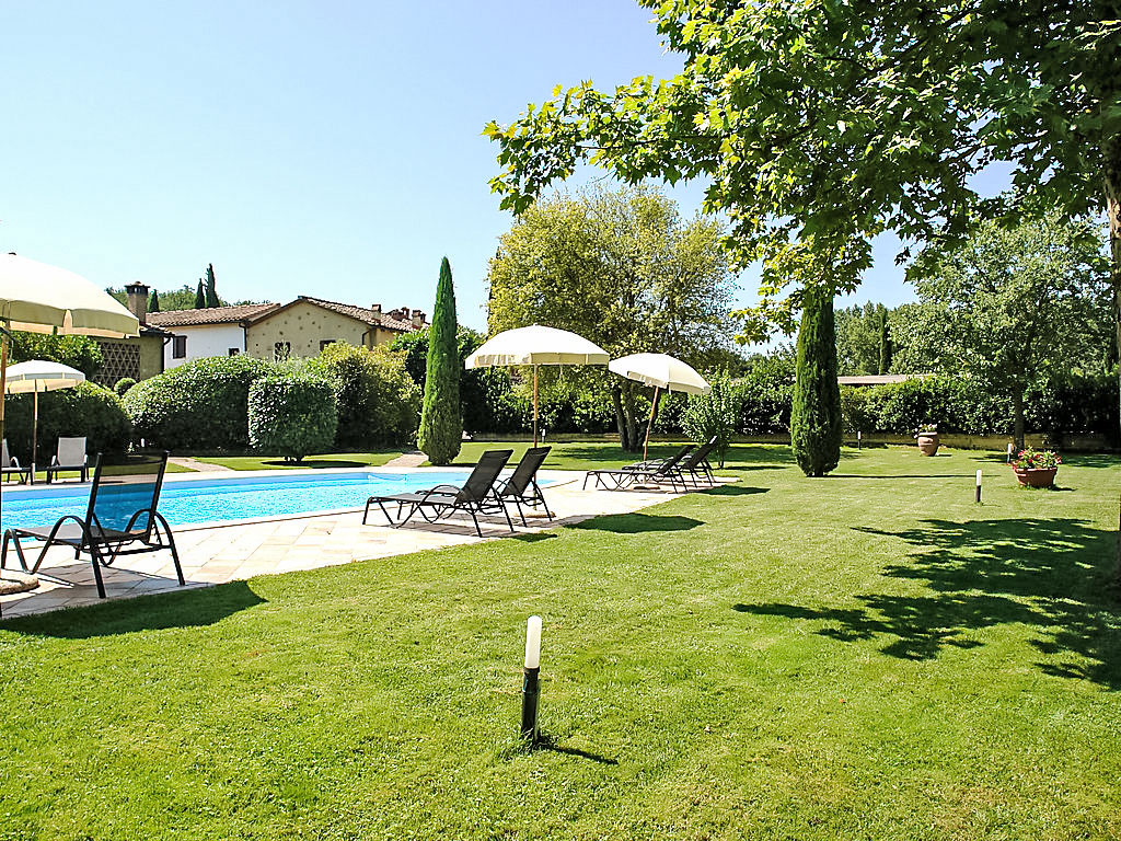 Ehemaliges Bauerngut mit wunderschöner Aussicht auf das Chianti-Classico-Gebiet. Schöne Einrichtung im toskanischen Stil. Automatische Torzufahrt. Poolhandtücher stehen den Gästen zur Verfügung (extra). Verkauf von Wein und Olivenöl aus eigener Produktion. Bauernhaus "La Mirandola", renoviert. 10 km vom Zentrum von Castellina in Chianti, 15 km vom Zentrum von Siena, 45 km vom Zentrum von Firenze, ruhige Lage, im Grünen. Zur Mitbenutzung: Grundstück (eingezäunt), grosser, schöner, gepflegter Garten mit Rasen und Pflanzen, Schwimmbad (14 x 7 m, 140 - 200 cm tief, saisonale Verfügbarkeit: 24.Apr.-16.Okt.). Tischtennis, Terrasse, Gartenmöbel. Zur Alleinbenutzung: Terrasse, Gartenmöbel, Grill. Im Hause: Frühstücksraum, Internetzugang (alles extra), Zentralheizung, Waschmaschine (zur Mitbenutzung, extra), Heizung vor Ort zu zahlen, Heizung nur verfügbar von 01.11. bis 15.04.. Wohnungsreinigung möglich (extra). Frühstück möglich. Parkplatz (überdacht) beim Haus. Einkaufsgeschäft 2 km, Bahnstation "Castellina Scalo" 2 km. Golfplatz 15 km, Tennis 3 km, Reitstall 2 km. Bitte beachten: Der Besitzer wohnt auf dem gleichen Grundstück. Mountainbikes auf Anfrage (gratis).