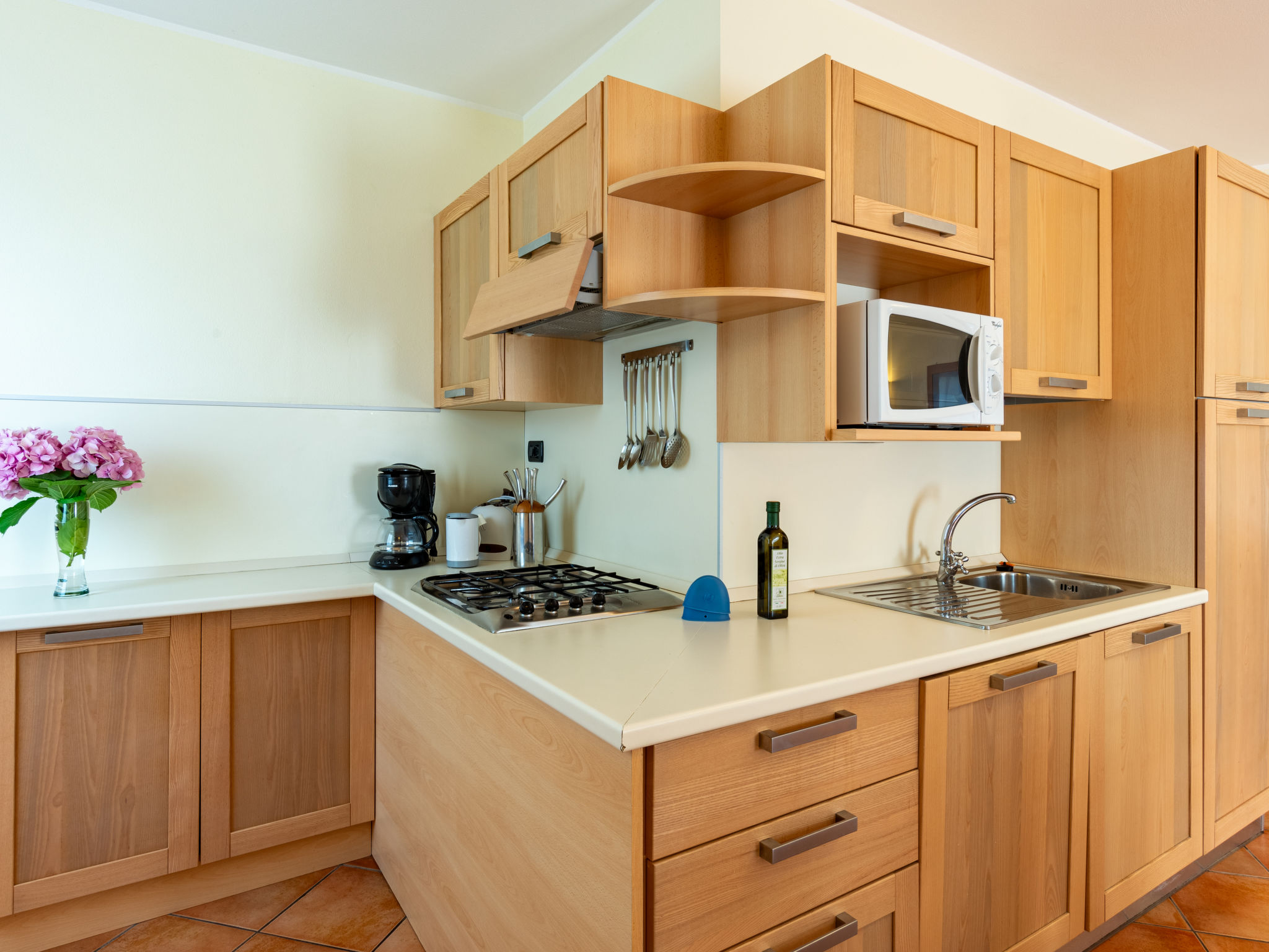 "Rustico", 3-Zimmer-Wohnung 60 m2. Komfortabel und schön eingerichtet: Wohn-/Schlafzimmer mit 1 Diwanbett, 1 Ausziehbett, Esstisch, Sat-TV, DVD und Klimaanlage. 1 Doppelzimmer mit Klimaanlage. 1 Zimmer mit 2 Betten und Klimaanlage. Offene Küche (Geschirrspüler, 4 Flammen, Toaster, Wasserkocher, Mikrowelle, Tiefkühler, elektrische Kaffeemaschine). Dusche/Bidet/WC. G-Heizung (extra). Kleiner Balkon oder Gartensitzplatz. Balkonmöbel. Sicht auf die Landschaft. Zur Verfügung: Telefon, Safe, Haartrockner. Internet (Wireless LAN, gratis). Parkplatz (1 Auto).