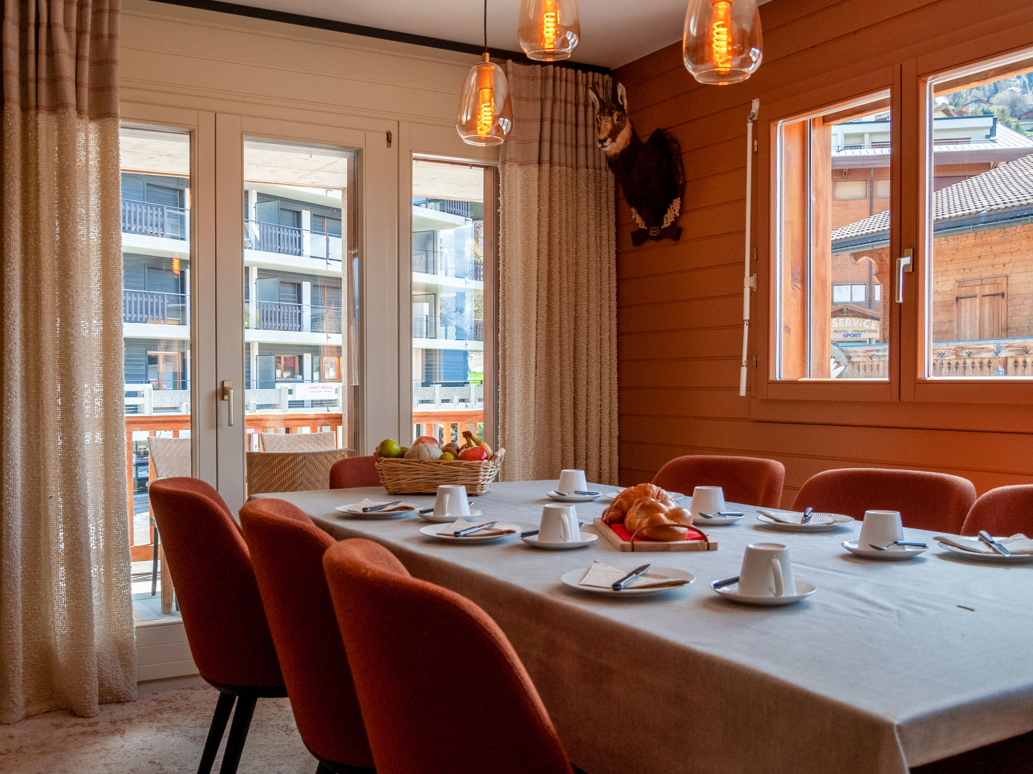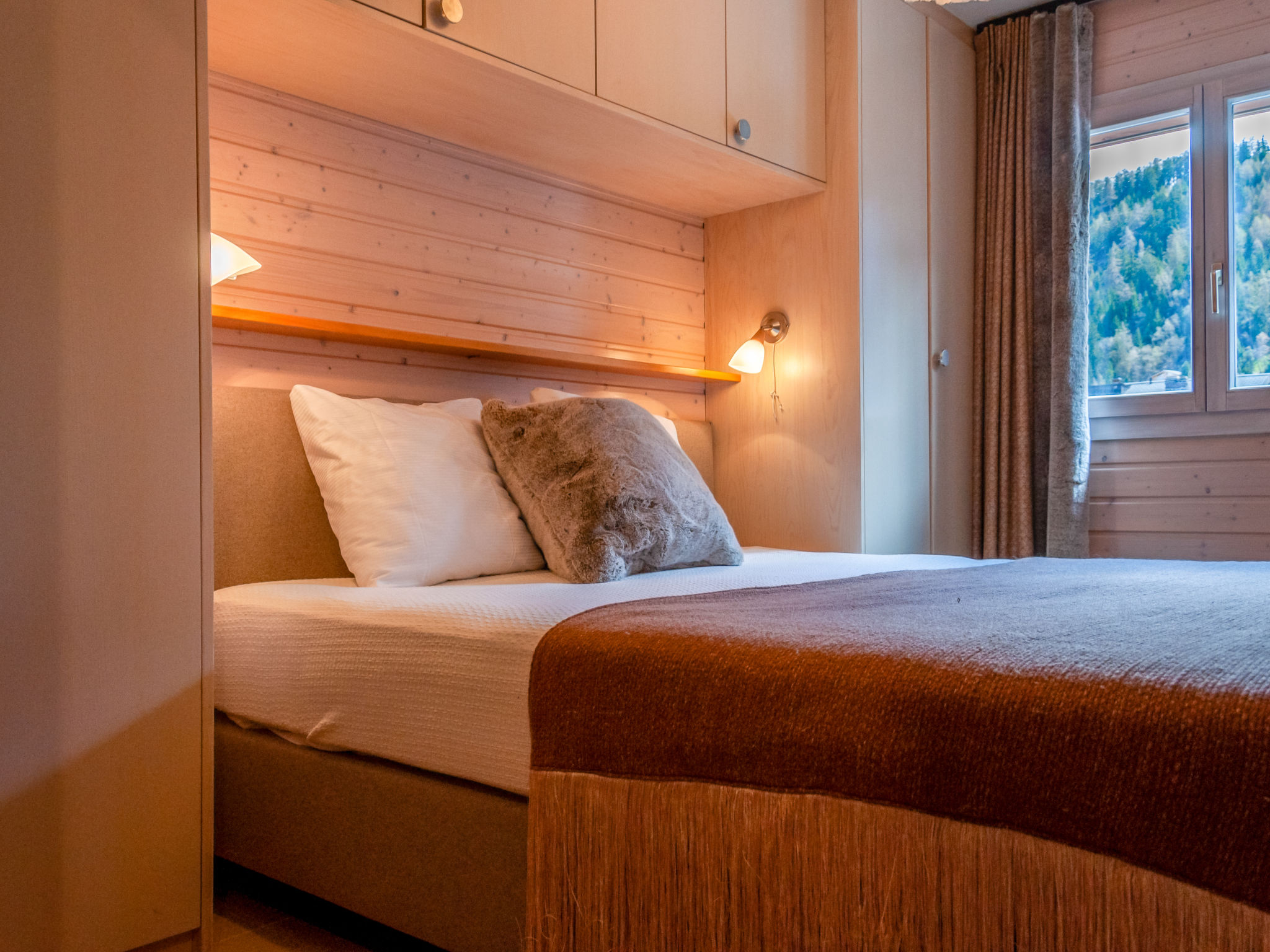 "Les Chouettes 23", 4-Zimmer-Wohnung 100 m2 im 2. Stock. Komfortabel eingerichtet: grosses Wohn-/Esszimmer mit Essecke, Kabel-TV und Stereoanlage. Ausgang zur Terrasse. 1 Zimmer mit 1 Doppelbett und Dusche/WC. 1 Zimmer mit 1 franz. Bett. 1 Zimmer mit 1 Doppelbett. Offene Küche (Backofen, Geschirrspüler, Kombinationsmikrowelle). Bad, sep. WC. Terrasse, Nordlage Terrasse, Südlage. Sehr schöne Sicht auf die Berge und das Tal. Zur Verfügung: Internet (Wireless LAN, gratis). Garage Nr. 4, Höhe 210 cm, Breite 230 cm. Bitte beachten: Nichtraucher-Unterkunft.