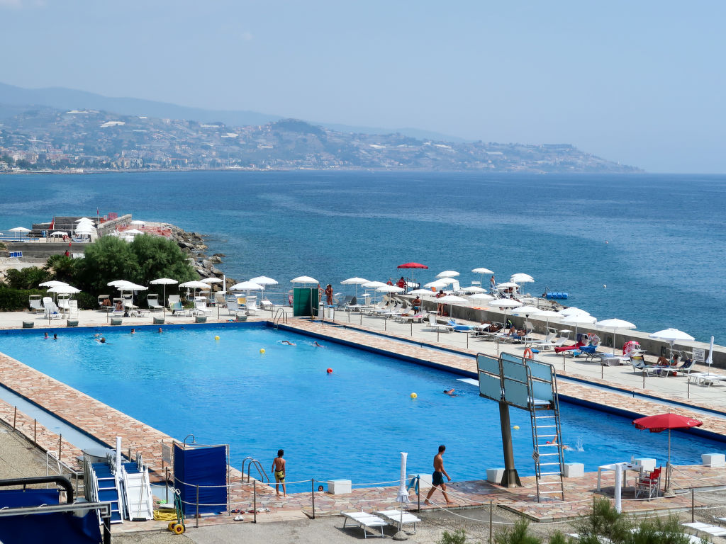 Grosse, kinderfreundliche Ferienanlage "Capo Nero", auf 9 Stockwerken. 50 Wohnungen in der Residenz. 3 km vom Zentrum von San Remo, 2 km vom Zentrum von Ospedaletti, 24 km vom Zentrum von Menton, sonnige Lage am Hang, direkt am Meer, direkter Zugang zum Strand. Zur Mitbenutzung: 2 Schwimmbäder (50 x 20 m, 160 cm tief, saisonale Verfügbarkeit: 15.Jun.-30.Sep.). Kinderbecken, Aussendusche, Terrasse. In der Anlage: Restaurant, Bar, Fahrstuhl. Supermarkt 1 km, Fahrradverleih 1.5 km, Bahnstation "San Remo" 5 km, Sandstrand 100 m, Felsstrand 10 m. Golfplatz (18 Loch) 9 km, Radweg 900 m.