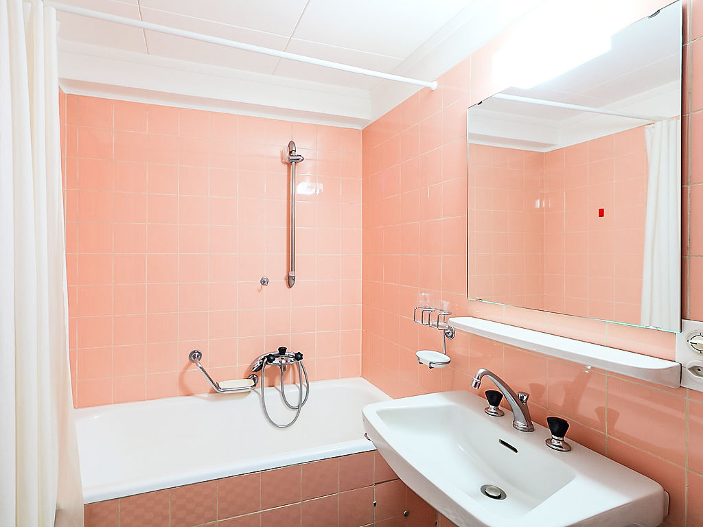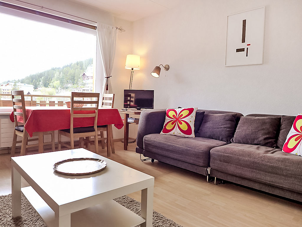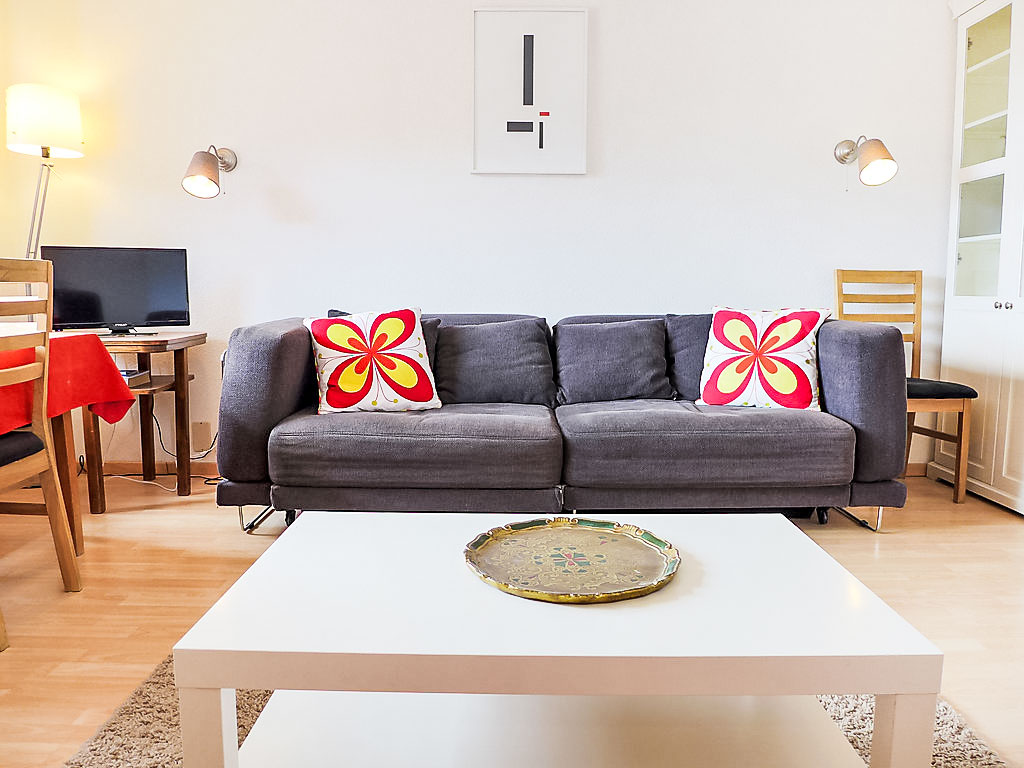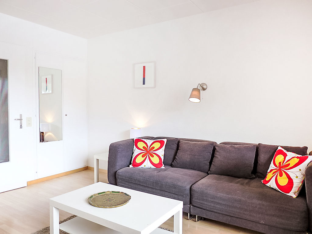 1-Zimmer-Wohnung 32 m2 im 3. Stock. Wohn-/Esszimmer mit 2 Diwanbetten (145 cm, Länge 200 cm), Kabel-TV (Flachbildschirm). Kleine Küche (3 Glaskeramikherd Platten, Toaster, Wasserkocher, Mikrowelle, elektrische Kaffeemaschine, Fondue Set (Käse)). Bad/WC. Balkon, Westlage. Terrassenmöbel. Schöne Sicht auf die Berge und die Landschaft. Zur Verfügung: Haartrockner. Internet (Wireless LAN, gratis). Bitte beachten: Nichtraucher-Unterkunft, kein Parkplatz.