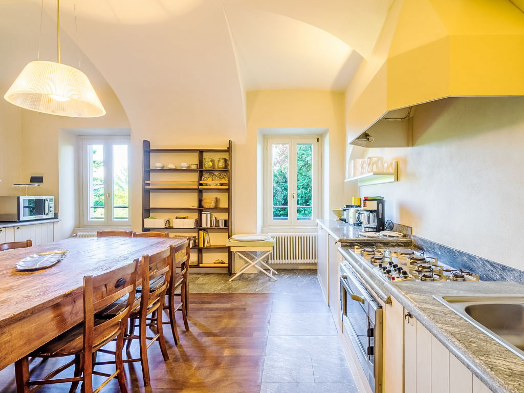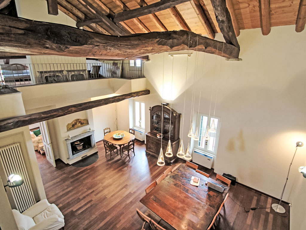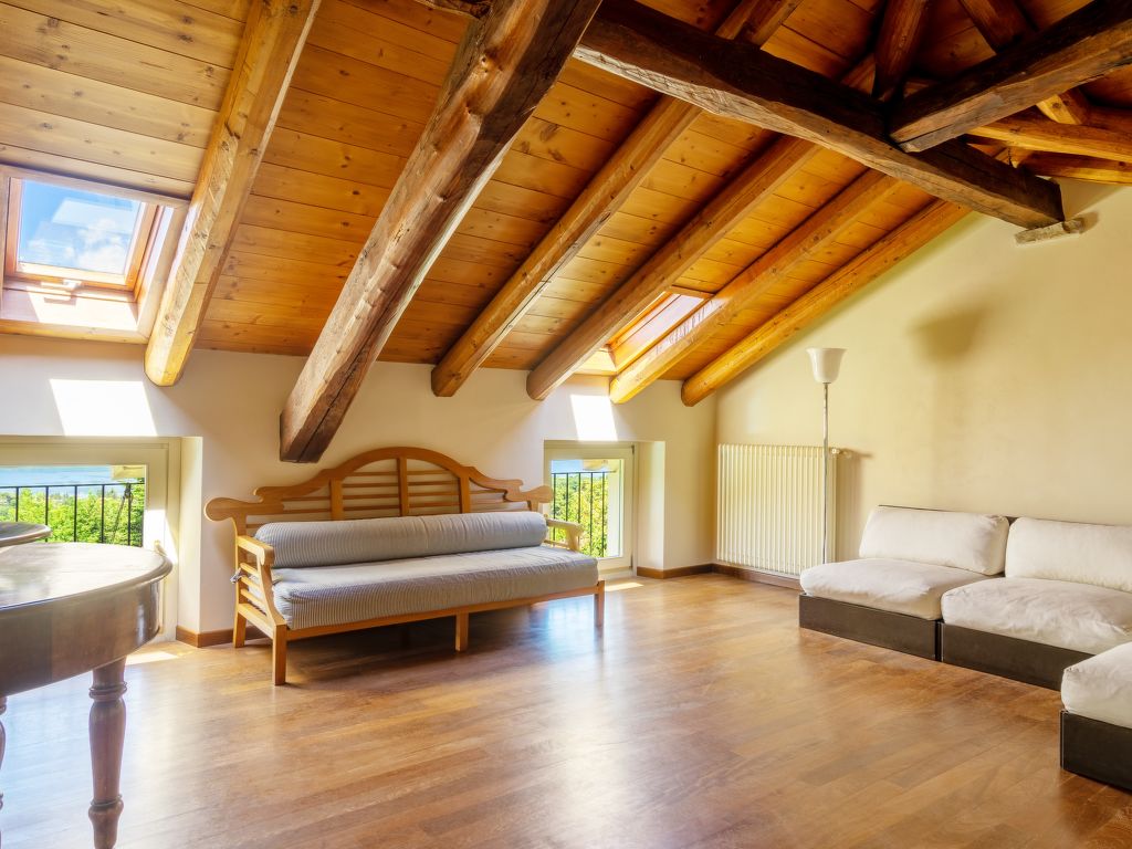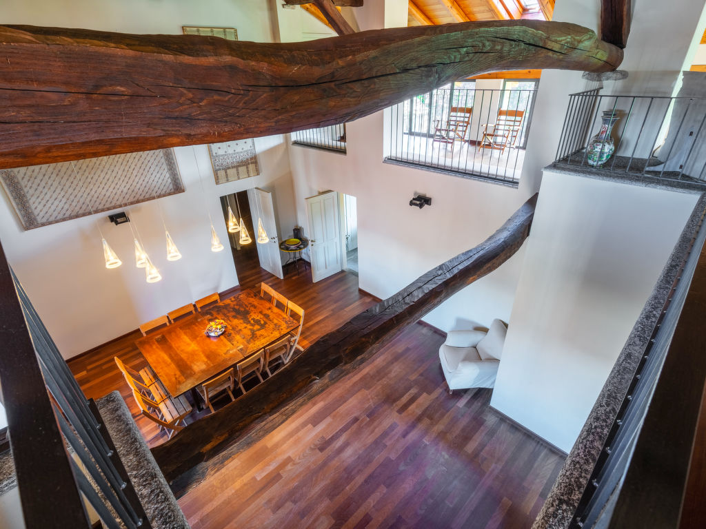 9-Zimmer-Villa 500 m2 auf 5 Stockwerken. Antik und geschmackvoll eingerichtet: Eingang. Esszimmer. Ausgang zum Gartensitzplatz. Grosse Küche (7 Kochplatten, Backofen, Geschirrspüler, Mikrowelle, Tiefkühler, elektrische Kaffeemaschine). Sep. WC. Obergeschoss: 1 abgeschrägtes Zimmer mit 2 Betten und 1 Diwanbett. Dusche/Bidet/WC. 2. Obergeschoss: 2 Doppelzimmer. 1 Zimmer mit 3 Betten. Bad/Bidet/WC, Dusche/Bidet/WC. 3. Obergeschoss: offenes grosses Wohnzimmer. 1 Doppelzimmer. Salon mit TV. Bad/Bidet/WC. Dachgeschoss: offener Salon. Dusche/Bidet/WC. Ölheizung (extra). Heizung nur verfügbar von 15.10. bis 15.04. Parkettböden, Natursteinböden. Gartensitzplatz überdacht. Terrassenmöbel. Panoramasicht auf den See und die Berge. Zur Verfügung: Waschmaschine, Kinderhochstuhl, Babybett bis 3 Jahre, Haartrockner. Internet (Wireless LAN, gratis). CIR:012114-CNI-00007