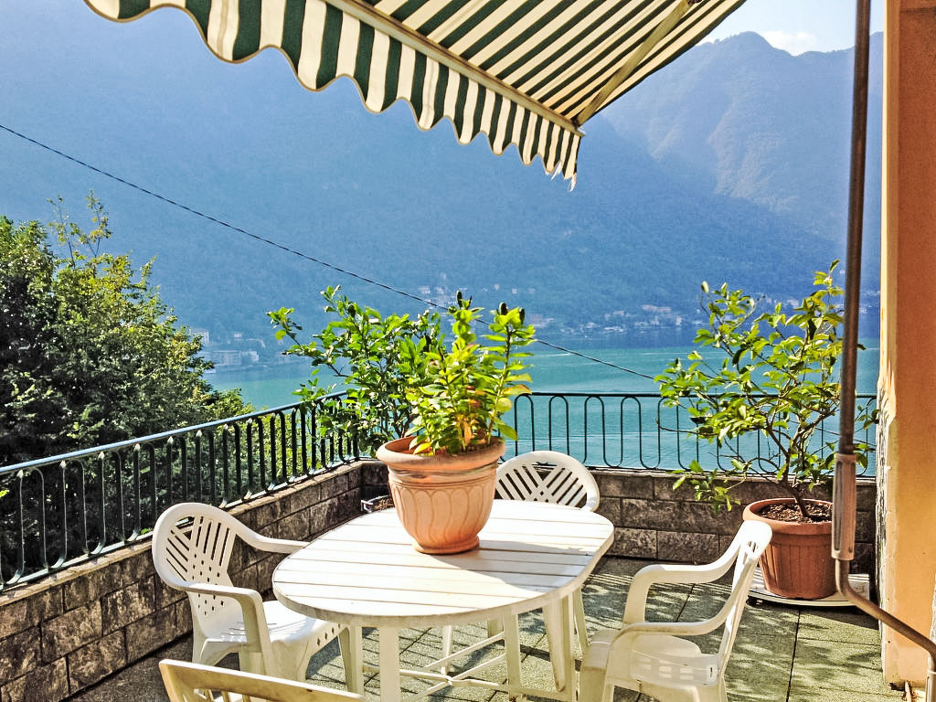 3-Zimmer-Wohnung 80 m2 im 1. Stock. Zweckmässig eingerichtet: Wohn-/Esszimmer mit TV und Klimaanlage. Ausgang zum Balkon. 1 Doppelzimmer. Ausgang zum Balkon. 1 kleines Zimmer mit 2 Betten. Küche (4 Kochplatten, Backofen, Geschirrspüler, Mikrowelle, Tiefkühler, elektrische Kaffeemaschine) mit offenem Kamin und Klimaanlage. Bad/Bidet/WC. Klimaanlage, Warmluftheizung (extra). Balkon, Terrasse 8 m2. Terrassenmöbel. Herrliche Sicht auf den See. Zur Verfügung: Waschmaschine, Haartrockner. Internet (Wireless LAN, gratis). Garage in 20 m, Breite 200 cm. 1 kleines Haustier/Hund erlaubt. CIR: 013161-CNI-00018