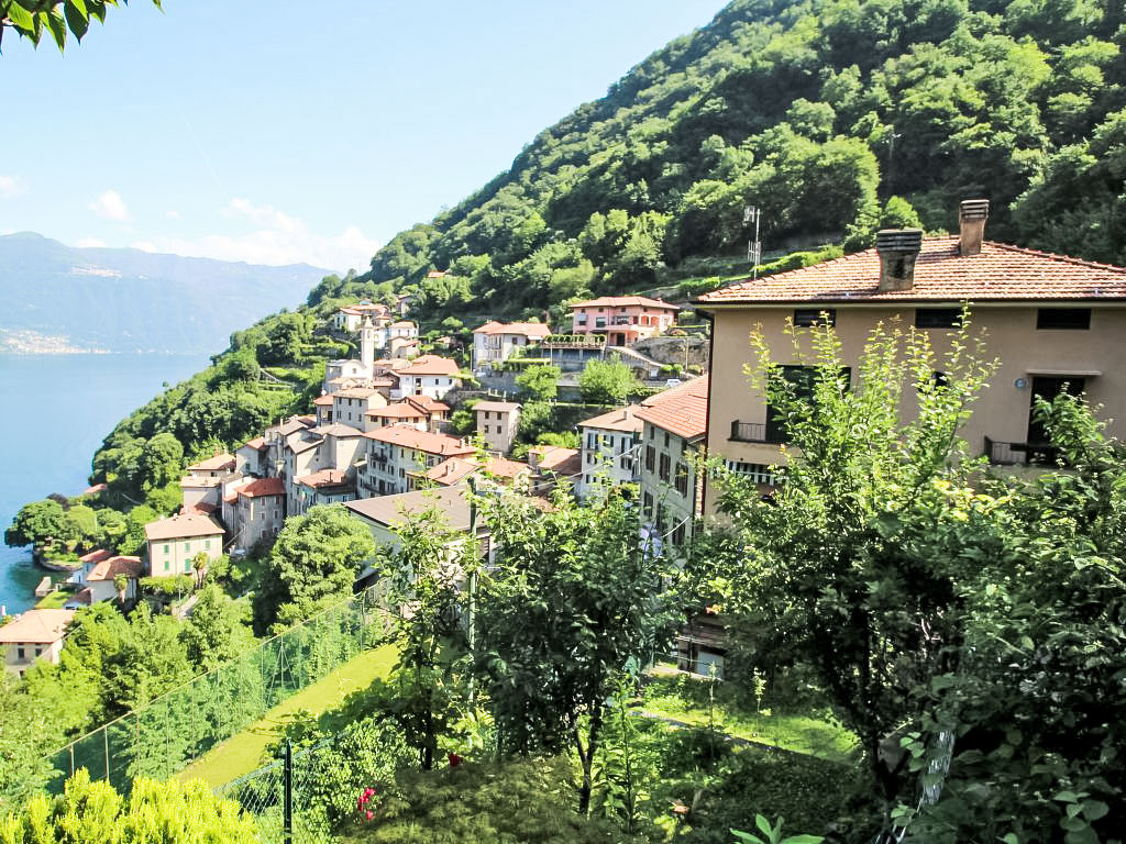 Dreifamilienhaus "Sabrina", auf 3 Stockwerken. Im Weiler Careno, 1 km vom Zentrum von Pognana Lario, 2 km vom Zentrum von Nesso, am Hang, 300 m vom See, an einer Strasse. Zur Alleinbenutzung: kleiner Terrassengarten (eingezäunt) mit Blumen und Bäumen. Im Hause: Einstellraum für Fahrräder. Treppenweg bis zum Haus. Parkplatz in 20 m. Lebensmittelgeschäft 1 km, Restaurant 500 m, Bushaltestelle "Como - Bellagio" 20 m, Kieselstrand 300 m (klein). Nahe gelegene Sehenswürdigkeiten: Boat service Como - Bellagio 300 m, Orrido di Nesso 2 km, Bellagio 15 km. Wandergebiete: Piani del Tivano 12 km, Ghisallo 25 km. Bitte beachten: Fahrzeug empfohlen.