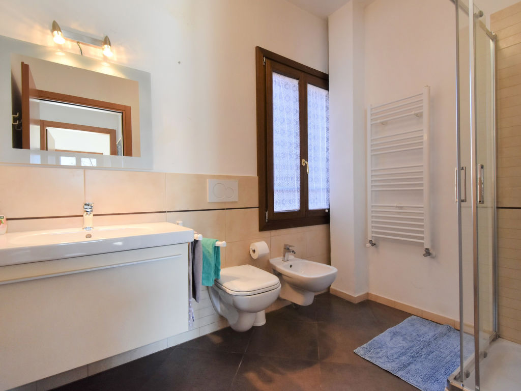 4-Zimmer-Wohnung 95 m2 im 2. Stock. Geräumig und hell, komfortabel und modern eingerichtet: Wohn-/Esszimmer mit Esstisch und TV (Flachbildschirm). 1 Zimmer mit 2 Betten. 1 Doppelzimmer mit 1 Doppelbett. Offenes, verbundenes Zimmer mit 1 Doppeldiwanbett. Offene Küche (4 Kochplatten, Backofen, Geschirrspüler, Mikrowelle) mit Esstisch. 2 Duschen/Bidet/WC. Heizung. Sicht auf die Lagune. Zur Verfügung: Waschmaschine, Bügeleisen, Haartrockner. Internet (Wireless LAN, gratis). M0270423477