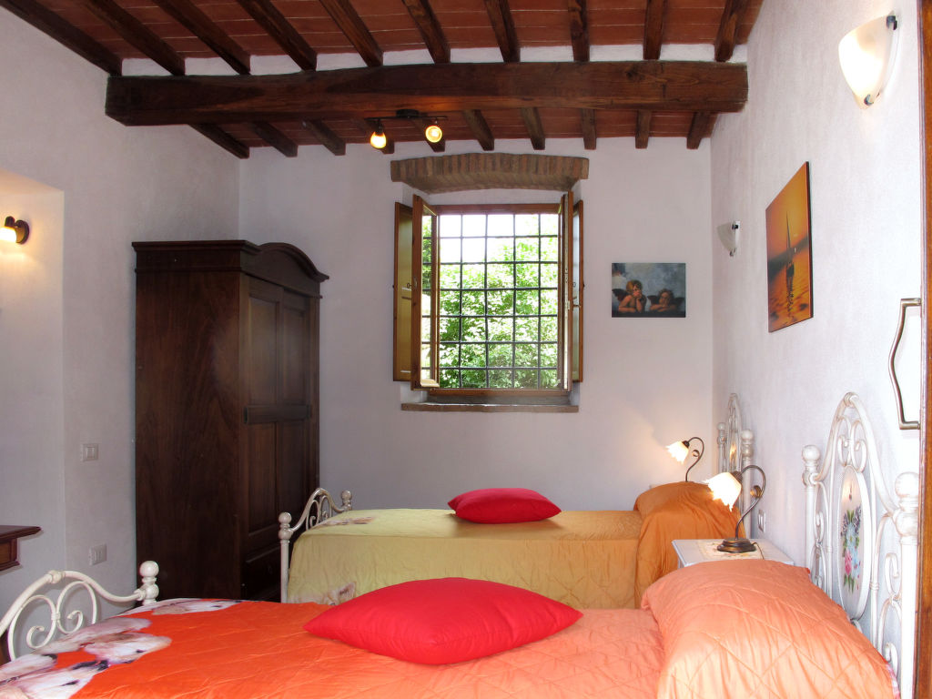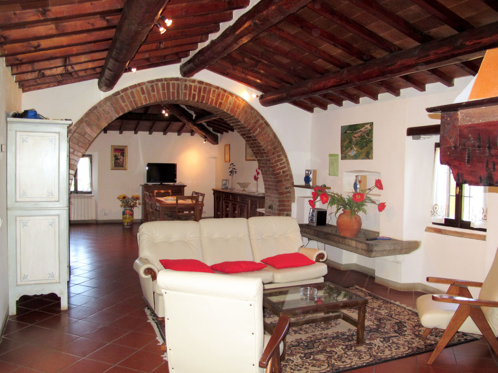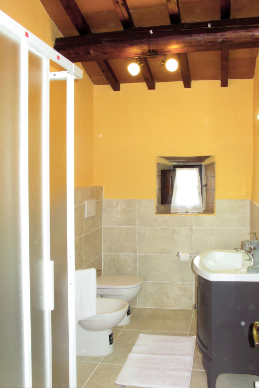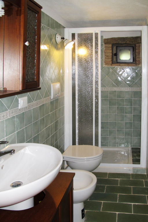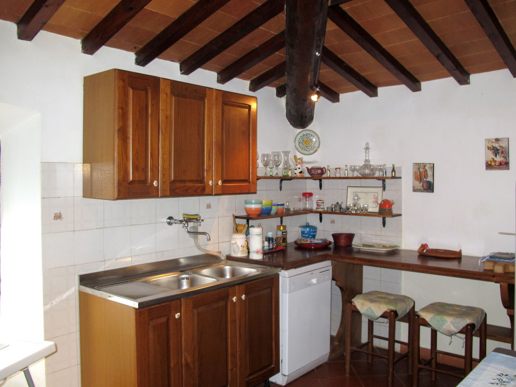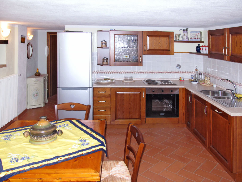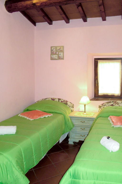 "Il Casino", 7-Zimmer-Landhaus 155 m2 auf 2 Stockwerken. 1 Zimmer mit 1 franz. Bett (160 cm). 1 Zimmer mit 2 Betten (80 cm). Küche (2 Kochplatten, Backofen, Tiefkühler, elektrische Kaffeemaschine, Pizzaofen) mit Esstisch. Dusche/WC. Obergeschoss: (Aussentreppe) Wohn-/Esszimmer mit offenem Kamin, Esstisch und Sat-TV. Durchgangszimmer mit 1 franz. Bett (160 cm). 1 kleines Zimmer mit 2 Betten (80 cm). Verbundenes Zimmer mit 1 franz. Bett (160 cm), sep. WC. Küche (Backofen, Geschirrspüler, 4 Flammen, Toaster, Mikrowelle, elektrische Kaffeemaschine). Dusche/WC. G-Heizung. Natursteinböden. Komfortable Einrichtung im Landhausstil. Laube. Panoramasicht. Zur Verfügung: Waschmaschine, Kinderhochstuhl, Babybett. Internet (Wireless LAN, extra). Bitte beachten: Nichtraucher-Unterkunft. Maximal 3 Haustiere/Hunde erlaubt. Keine interne Verbindung zwischen den Etagen. Bei Belegung mit weniger Personen als der maximalen Personenzahl steht eine Etage nicht zur Verfügung.