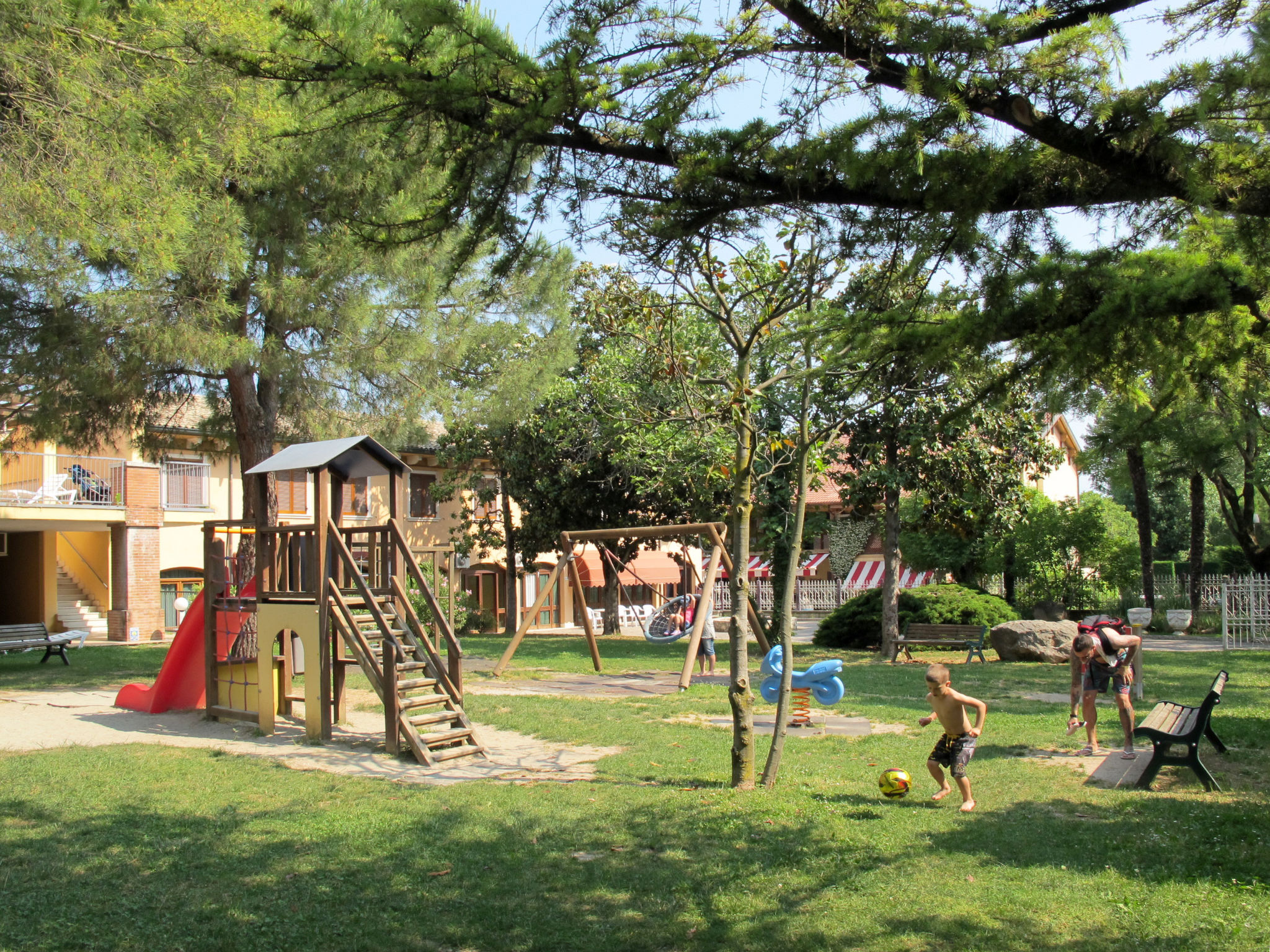 Sehr grosse, kinderfreundliche Ferienanlage "Bella Italia*****". 1 km vom Zentrum von Peschiera del Garda, 270 m vom See, direkter Zugang zum Strand. Zur Mitbenutzung: Grundstück 30 ha (eingezäunt) mit Rasen und Bäumen, 4 Schwimmbäder (saisonale Verfügbarkeit: 15.Apr.-30.Sep.). WC im Poolbereich, Kinderbecken, Rutschbahn, Aussendusche, Tennis (1 x Hartbelag), Tischtennis, Basketball, Beachvolleyball, Kinderspielplatz. In der Anlage: Empfang, Restaurant, Bar, Wireless LAN, Tischtennis, Einkaufsmöglichkeit, Boutique, Kiosk, Waschmaschine, Wäschetrockner (zur Mitbenutzung, extra), Fahrradverleih. Parkplatz auf dem Grundstück. Kieselstrand 270 m. Golfplatz (18 Loch) 20 km. Nahe gelegene Sehenswürdigkeiten: Sirmione 13 km, Verona 31 km. Bitte beachten: Animation in der Saison. Geeignet für Familien, Babyausstattung auf Anfrage (extra). Jugendgruppen nur auf Anfrage.
