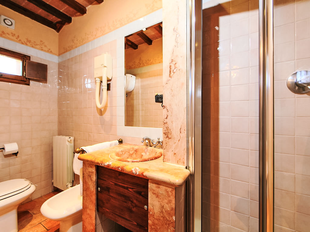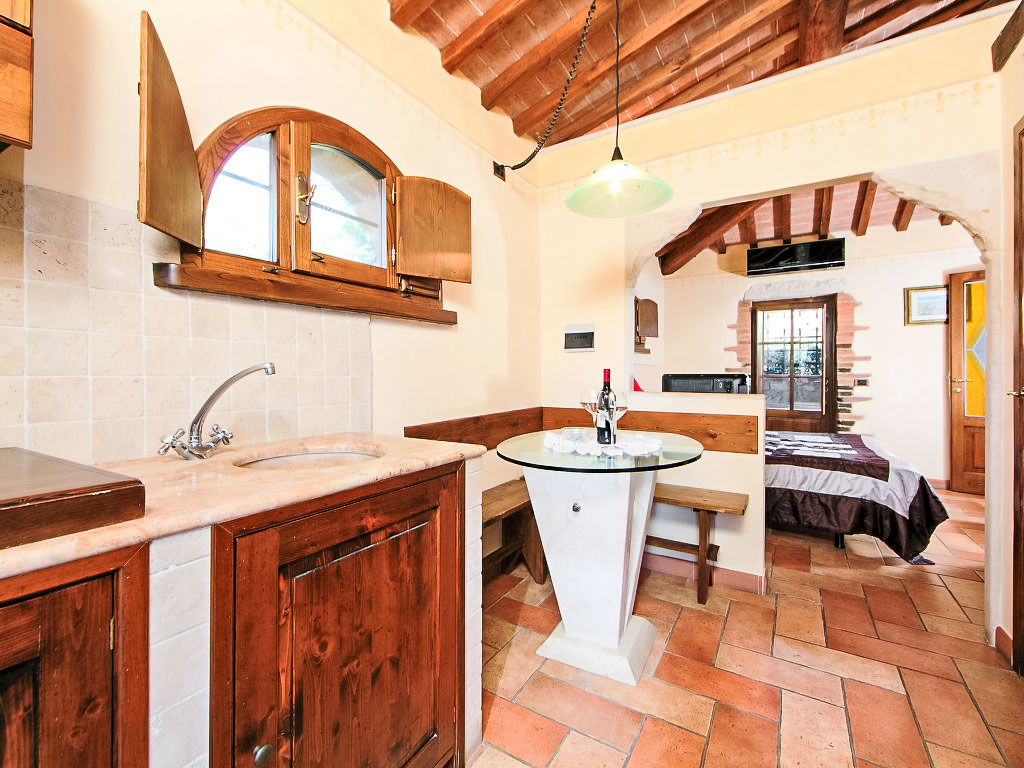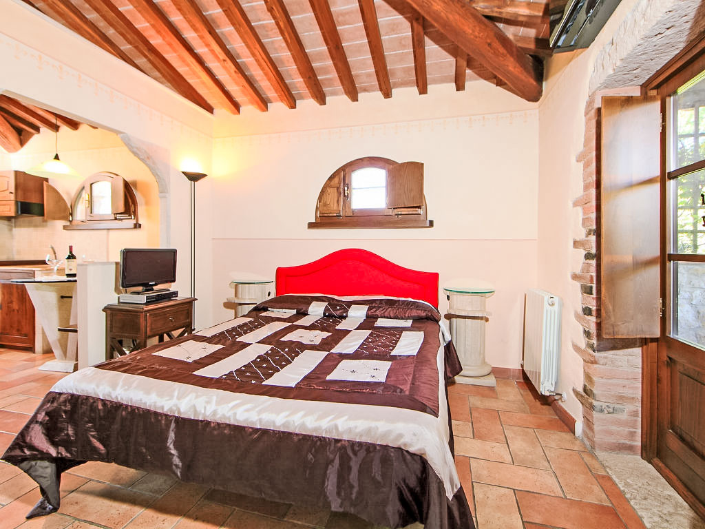 Casale Ischieto ist ein mittelalterliches Bauernhaus, das vor kurzem sorgfältig restauriert wurde. 800 m von der Ortschaft Serre di Rapolano entfernt. Nur 28 km von Siena und 30 km von Montalcino entfernt, liegt es in der bezaubernden Landschaft südlich von Siena, in hügeliger Lage nur 2 km von einem berühmten Thermalbad entfernt. In fünf hübsche Wohnungen unterteilt, ausgestattet mit Sat-TV und Heizung (extra, gemäss Verbrauch). Das Haus verfügt über ausgestattete Aussenbereiche im Grünen, ein Schwimmbecken mit Druckstrahlmassage zur alleinigen Benutzung der Gäste, Bogenschiessstand und Mountain-Bikes (zwei pro Wohnung, gratis). Das Restaurant des Landgutes ist jeden Tag geöffnet (abends), auf Anfrage auch mittags. Für Pferdeliebhaber organisiert der Besitzer auf Anfrage und je nach Verfügbarkeit Ausritte in die benachbarten Wälder (die Ställe befinden sich im Umkreis von 6 km). Sehr alter Bauernhof "Casale Ischieto", renoviert, umgeben von Feldern. 800 m vom Zentrum von Serre di Rapolano, 28 km vom Zentrum von Siena, 30 km vom Zentrum von Montalcino, auf einem Hügel, im Grünen. Zur Mitbenutzung: Grundstück 50 ha, Schwimmbad (16 x 9 m, 80 - 165 cm tief, saisonale Verfügbarkeit: 15.Mai.-03.Okt.) mit Innentreppe. Aussendusche, Gartenmöbel. Zur Alleinbenutzung: Gartenmöbel. Im Hause: Restaurant, Bar, Heizung vor Ort zu zahlen (01.11.-01.04.), Fahrräder vorhanden. Zufahrt bis zum Haus. Parkplatz auf dem Grundstück. Einkaufsgeschäft 800 m, Bushaltestelle 500 m, Bahnstation "Rapolano Terme" 2 km, Thermalbad "Rapolano Terme" 2 km. Golfplatz (9 Loch) 21 km, Tennis 2 km, Reitstall 6 km. Nahe gelegene Sehenswürdigkeiten: Castelnuovo Berardenga 18 km, Montepulciano 31 km, Pienza 37 km, San Quirico D'orcia 44 km. Bitte beachten: geeignet für Familien, geeignet für Senioren. In diesem Haus sind weitere Ferienwohnungen mietbar.