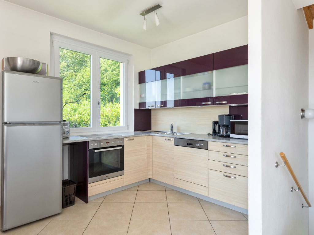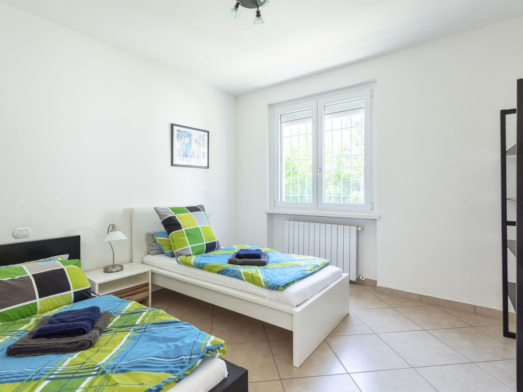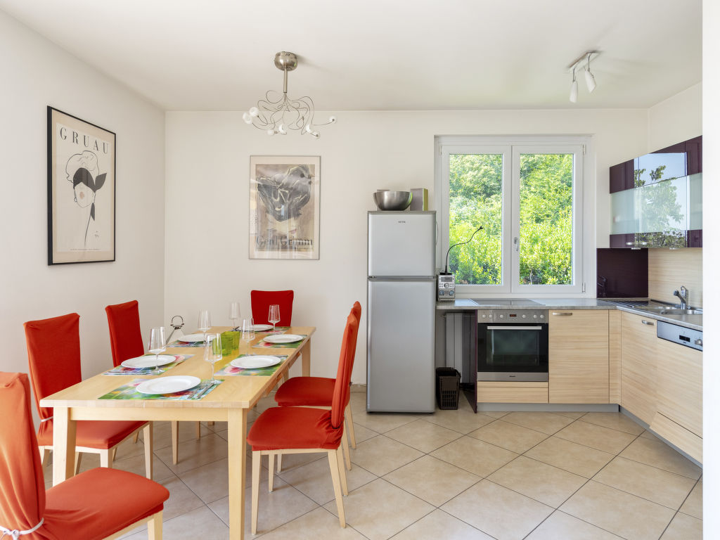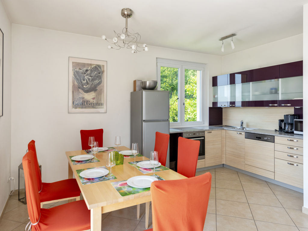 4-Zimmer-Haus 100 m2 auf 2 Stockwerken. Schön und modern eingerichtet: unteres Geschoss: Eingang. 2 Doppelzimmer. 1 Zimmer mit 2 Betten. Dusche/WC. Obergeschoss: Wohnzimmer mit Esstisch und Sat-TV. Ausgang zum Balkon. Offene Küche (Backofen, Geschirrspüler, 4 Glaskeramikherd Platten, Toaster, Wasserkocher, Tiefkühler, elektrische Kaffeemaschine). Dusche/WC. G-Heizung. Balkon 45 m2, Terrasse überdacht. Terrassenmöbel, Balkonmöbel, Liegestühle (6). Herrliche Fernsicht auf den See. Zur Verfügung: Internet (Wireless LAN, gratis). Bitte beachten: Nichtraucher-Unterkunft. 017180-CNI-00051