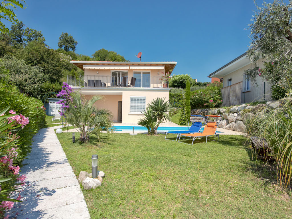 Einfamilienhaus "Bellavista", auf 2 Stockwerken. Im Ortsteil Soiano del Lago, 3 km vom Zentrum von Moniga del Garda, am Hang, im Villenviertel, 4 km vom See. Zur Alleinbenutzung: Terrassengarten, 700 m2 (eingezäunt) Rasen und Pflanzen, Liegewiese, Schwimmbad (8 x 4 m, 01.05.-30.09.). Treppenweg bis zum Haus. Parkplatz (für 2 Autos) beim Haus. Einkaufsgeschäft 2.5 km, Bahnstation "Desenzano" 11 km, Kieselstrand 4 km. Golfplatz (27 Loch) 5 km. Nahe gelegene Sehenswürdigkeiten: Desenzano del Garda 11 km, Salò 13 km, Brescia 36 km. Der Besitzer akzeptiert keine Jugendgruppen.