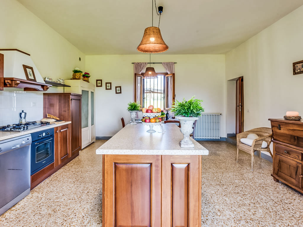 Lamporecchio 5 km von Vinci: Alleinstehende Villa "Beboli", renoviert im Jahre 2006. 5 km vom Zentrum von Vinci, 18 km vom Zentrum von Montecatinit Terme, 45 km vom Zentrum von Firenze, alleinstehende, ruhige, sonnige Lage. Zur Alleinbenutzung: Garten 4'000 m2 (eingezäunt), Schwimmbad (5 x 10 m, 150 cm tief, 08.05.-25.09. und 07.05.-24.09.). Aussendusche, Gartenmöbel, Grill. Im Hause: Billard, Heizung vor Ort zu zahlen, Heizung nur verfügbar von 01.11. bis 15.04.. Wohnungsreinigung 1 mal wöchentlich (inkl.). Zufahrt bis zum Haus (400 m Naturweg). Parkplatz. Lebensmittelgeschäft 2 km, Bahnstation "Empoli" 15 km, Sandstrand "Viareggio - Forte dei Marmi" 65 km, Thermalbad "Montecatini Terme" 15 km. Golfplatz (18 Loch) 10 km, Reitstall 8 km. Nahe gelegene Sehenswürdigkeiten: Montecatini Terme 15 km, Pistoia 21 km, Carmignano 21 km, San Miniato 21 m, San Casciano in Val di Pesa 40 km. Ab Hof Verkauf von bäuerlichen Produkten. An Wochentagen werden von 08.00-10.00 Uhr Unterhaltsarbeiten am Schwimmbad und am Garten durchgeführt. Auf Anfrage kann das Haus für total 18 Personen gebucht werden (Ref. IT5220.980.2). In diesem Fall verfügen die Gäste zusätzlich zur Villa über eine Wohnung für 4 Personen, mit separatem Eingang.