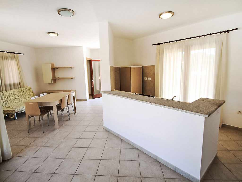 3-Zimmer-Villa 90 m2, im Erdgeschoss. Einfach und modern eingerichtet: Wohn-/Schlafzimmer mit 1 Doppeldiwanbett und TV. 1 Doppelzimmer mit Dusche/Bidet/WC. 1 Doppelzimmer. Kochnische (4 Kochplatten, Geschirrspüler, Mikrowelle, Tiefkühler). Dusche/Bidet/WC. Terrassenmöbel, Gartengrill. Zur Verfügung: Waschmaschine. Internet (Wireless LAN, gratis). 1 Haustier/Hund erlaubt.