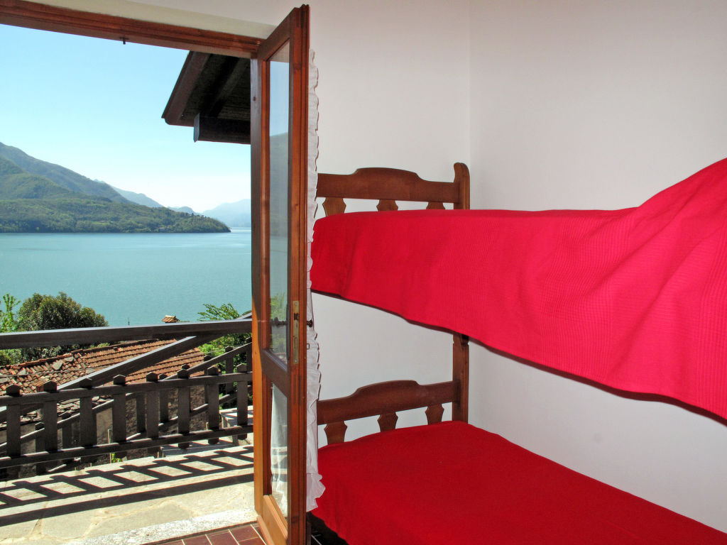 "Chalet I (DMA215)", 4-Zimmer-Haus 80 m2, im erhöhten Erdgeschoss, Südostlage. Zweckmässig und rustikal eingerichtet: Wohn-/Esszimmer mit offenem Kamin, Esstisch, Essecke und Sat-TV. Ausgang zur Terrasse. 1 Zimmer mit 1 franz. Bett (160 cm). Ausgang zum Balkon. 1 Zimmer mit 2 Betten (80 cm). 1 Zimmer mit 1 x 2 Etagenbetten. Ausgang zum Balkon. Küche (Backofen, Geschirrspüler, 4 Flammen, Toaster, Wasserkocher, Tiefkühler, elektrische Kaffeemaschine). Ausgang zur Terrasse. Bad/WC. Ölheizung. Balkon, Terrasse überdacht. Terrassenmöbel, Balkonmöbel, Gartengrill (mobil), Liegestühle (4). Panoramasicht auf den See. Zur Verfügung: Waschmaschine, Bügeleisen, Kinderhochstuhl, Babybett. Internet (Wireless LAN, gratis). Parkplatz (eingezäunt) in 150 m. CIR: 013089-CNI-00012