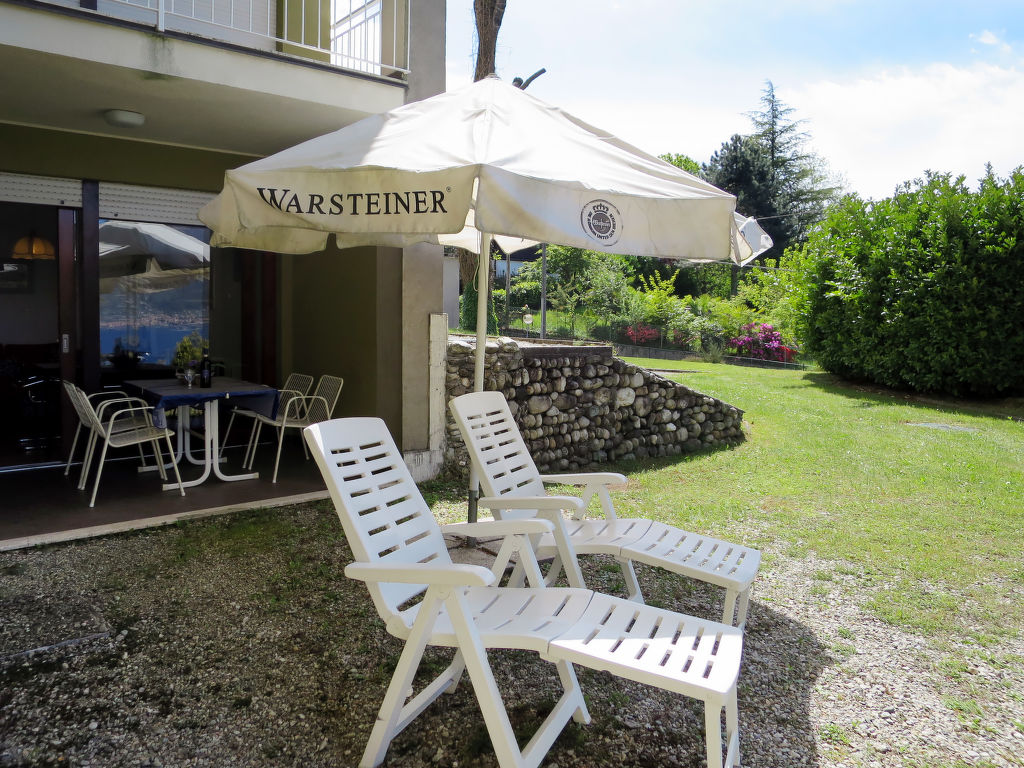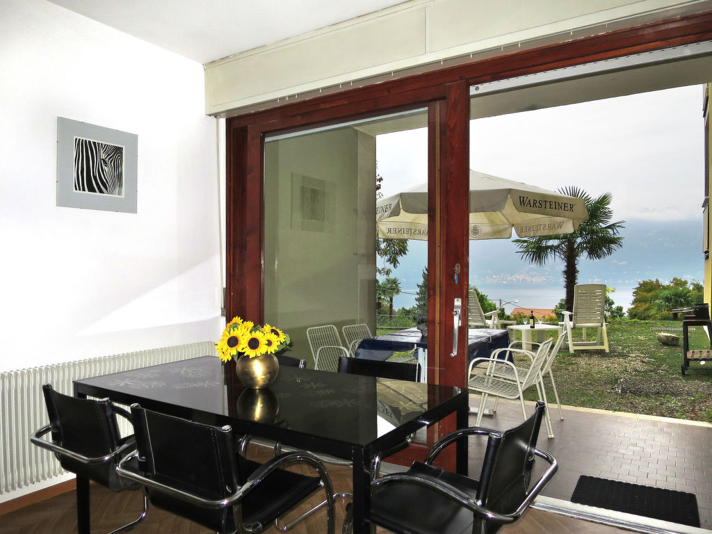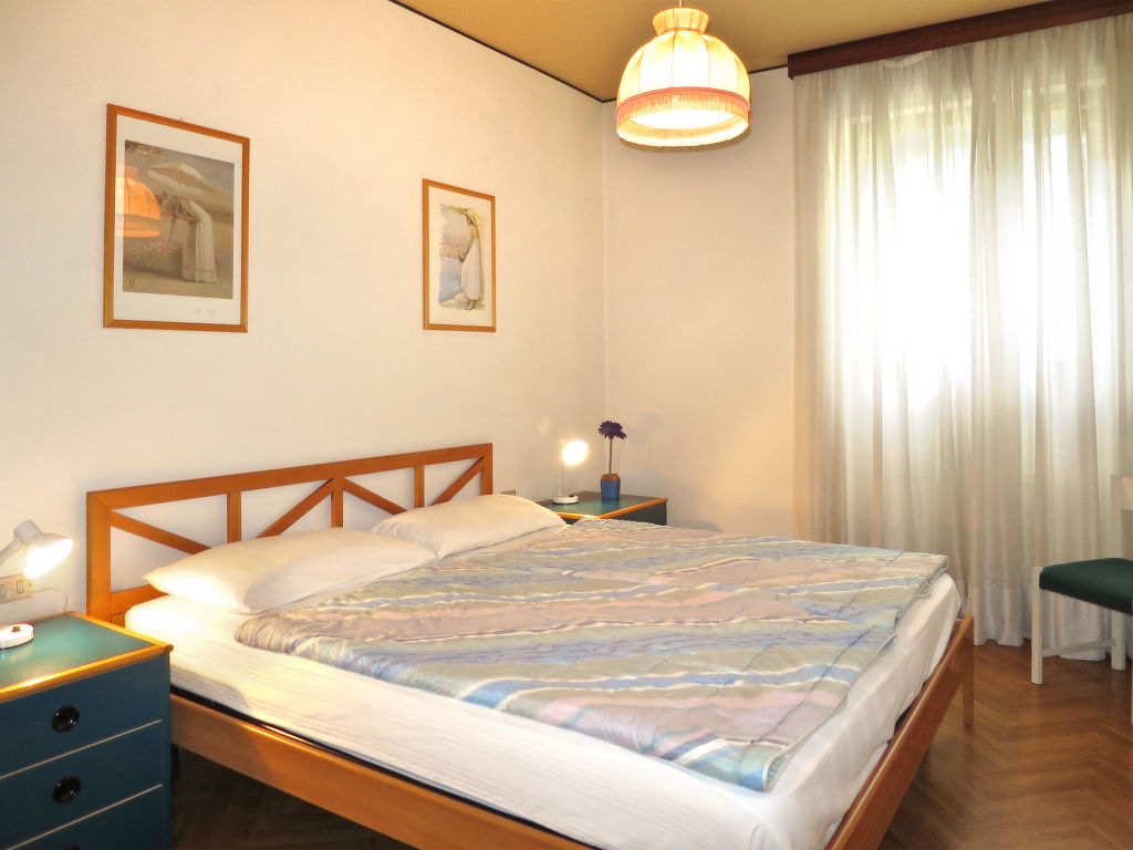 "Euroville", 3-Zimmer-Wohnung 70 m2, im erhöhten Erdgeschoss. Zweckmässig eingerichtet: Wohn-/Esszimmer mit Esstisch und Sat-TV. Ausgang zum Gartensitzplatz. 1 Zimmer mit 1 franz. Betten (160.'00 cm). 1 Zimmer mit 2 Betten. Kleine Küche (4 Kochplatten, Geschirrspüler, Toaster, Mikrowelle, Tiefkühler, elektrische Kaffeemaschine). Bad/Bidet/WC. Gartensitzplatz 6 m2, überdacht, kleiner Garten. Terrassenmöbel, Liegestühle (2). Sicht auf den See. 1 Haustier/Hund erlaubt. CIR:012076-CNI-00009