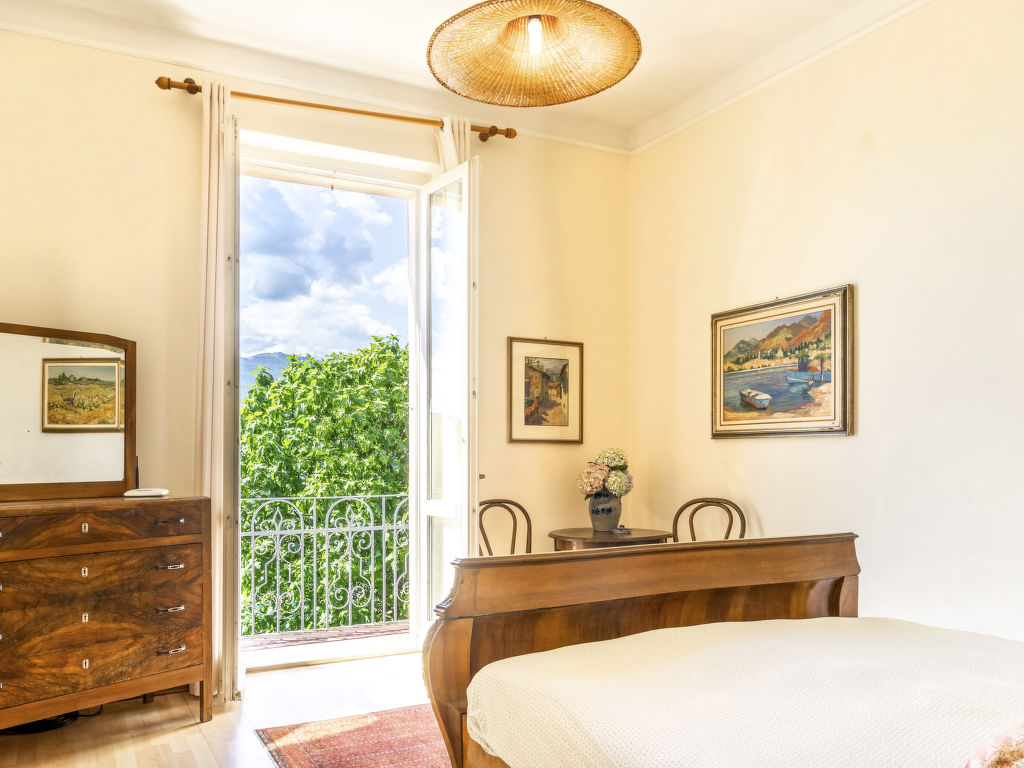 4-Zimmer-Wohnung 150 m2 auf 2 Stockwerken im 1. Stock. Komfortabel eingerichtet: Obergeschoss: 1 Doppelzimmer. Ausgang zum Balkon. 1 Doppelzimmer mit 1 Doppelbett. Ausgang zur Terrasse. Küche (4 Kochplatten, Backofen, Wasserkocher, Tiefkühler, elektrische Kaffeemaschine) mit Esstisch. Bad/Bidet/WC, Dusche/Bidet/WC. 2. Obergeschoss: abgeschrägtes Wohnzimmer mit 1 Schlafmöglichkeit und Sat-TV. 1 abgeschrägtes Zimmer mit 2 Betten. Bad/Bidet/WC. G-Heizung (extra). Parkettböden. Kleiner Balkon, Terrasse 10 m2, überdacht, Laube. Terrassenmöbel, Liegestühle (4). Fernsicht auf den See. Zur Verfügung: Kinderhochstuhl, Babybett. Internet (Wireless LAN, gratis). Bitte beachten: Nichtraucher-Unterkunft. Maximal 1 Haustier/Hund erlaubt. Eigener Eingang. CIR:012045-CNI-00012