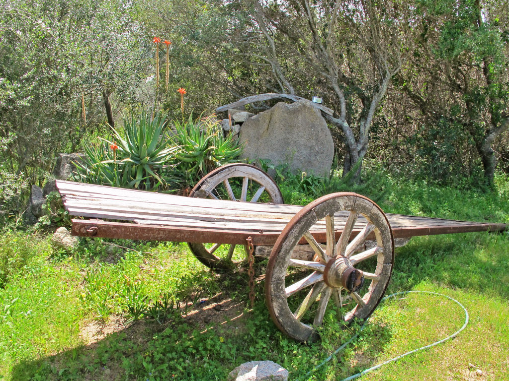 Alleinstehendes Landhaus "Stazzu Mendola", 20 m.ü.M.. 2 km vom Zentrum von Porto Pollo, 4.5 km vom Zentrum von Palau, 1.7 km vom Meer, im Grünen. Zur Alleinbenutzung: naturbelassenes Grundstück 3'000 m2 (eingezäunt) mit Pflanzen und Bäumen, Wiese. Aussendusche. 50 m lange holprige Zufahrt bis zum Haus. 3 m Fussweg bis zum Haus. Parkplatz (für 3 Autos) auf dem Grundstück. Supermarkt 4 km, Sandstrand 1.7 km. Bitte beachten: Fahrzeug empfohlen.