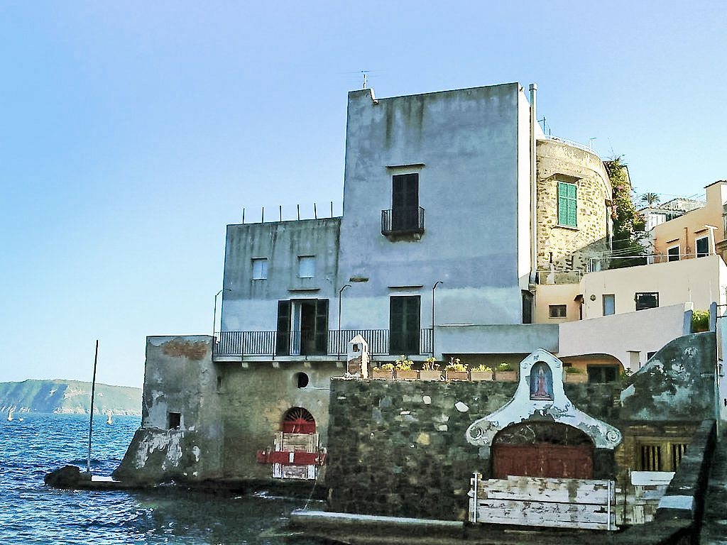Ischia Ponte: Schönes, historisches Mehrfamilienhaus "Lo Scuopolo", auf 3 Stockwerken, aus dem IX. Jahrhundert. 3 Wohnungen im Ferienhaus. Belebte, sonnige Lage, im Herzen der Stadt, 5 m vom Meer, 50 m vom Strand, in einer Fussgängerzone. Zur Alleinbenutzung: Gartenmöbel. Im Hause: Wireless LAN. Wohnungsreinigung möglich (extra). Abholservice vom Flughafen (extra). Öffentliche Parkplätze 200 m auf der Strasse extra. Einkaufsgeschäft 20 m, Lebensmittelgeschäft 100 m, Restaurant 50 m, Zentrum zu Fuss in 5 Minuten erreichbar, Bushaltestelle 100 m, Fähre "Ischia" 2 km, Sandstrand 100 m, Tauchzentrum 200 m, Thermalbad "Castiglione" 5 km. Sporthafen 200 m, Jacht-Hafen 300 m. Nahe gelegene Sehenswürdigkeiten: Ischia 2 km, Forio 5 km, Napoli, Penisola Sorrentina, Costiera Amalfitana, Capri. Bitte beachten: Auto nicht empfehlenswert, kein Fahrstuhl vorhanden. Private Bootsanlegestelle (extra) auf Anfrage. Die Fassade des Hauses wurde im ursprünglichen Zustand belassen, da das Haus unter Denkmalschutz steht.