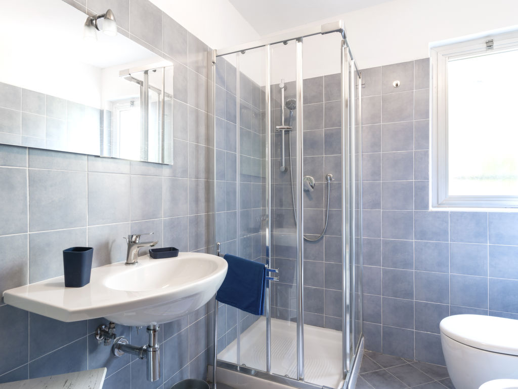 "Orizzonte", 4-Zimmer-Haus 150 m2 auf 2 Stockwerken. Zweckmässig eingerichtet: 1 Zimmer mit 2 Betten (80 cm), offenem Kamin (nur Deko). Ausgang zur Terrasse. Küche (4 Kochplatten, Backofen, Geschirrspüler, Toaster, Mikrowelle, Tiefkühler, Racletteofen) mit Esstisch. Ausgang zur Terrasse. Dusche/Bidet/WC. Obergeschoss: Wohn-/Esszimmer mit Esstisch, Sat-TV und Radio. Ausgang zum Balkon. 1 Zimmer mit 2 Betten (80 cm). Ausgang zum Balkon. 1 Zimmer mit 1 Doppelbett (140 cm). Ausgang zum Balkon. Dusche/WC. E-Heizung, Klimaanlage. Balkon 18 m2, Terrasse 20 m2 teilweise überdacht, kleiner Gartensitzplatz. Terrassenmöbel, Balkonmöbel, Gartengrill, Liegestühle (3). Sehr schöne Sicht auf das Meer. Zur Verfügung: Waschmaschine, Bügeleisen, Kinderhochstuhl, Babybett. Internet (Wireless LAN, gratis). Bitte beachten: Nichtraucher-Unterkunft. 1 Haustier/Hund erlaubt. CITRA: 009006-LT-0038