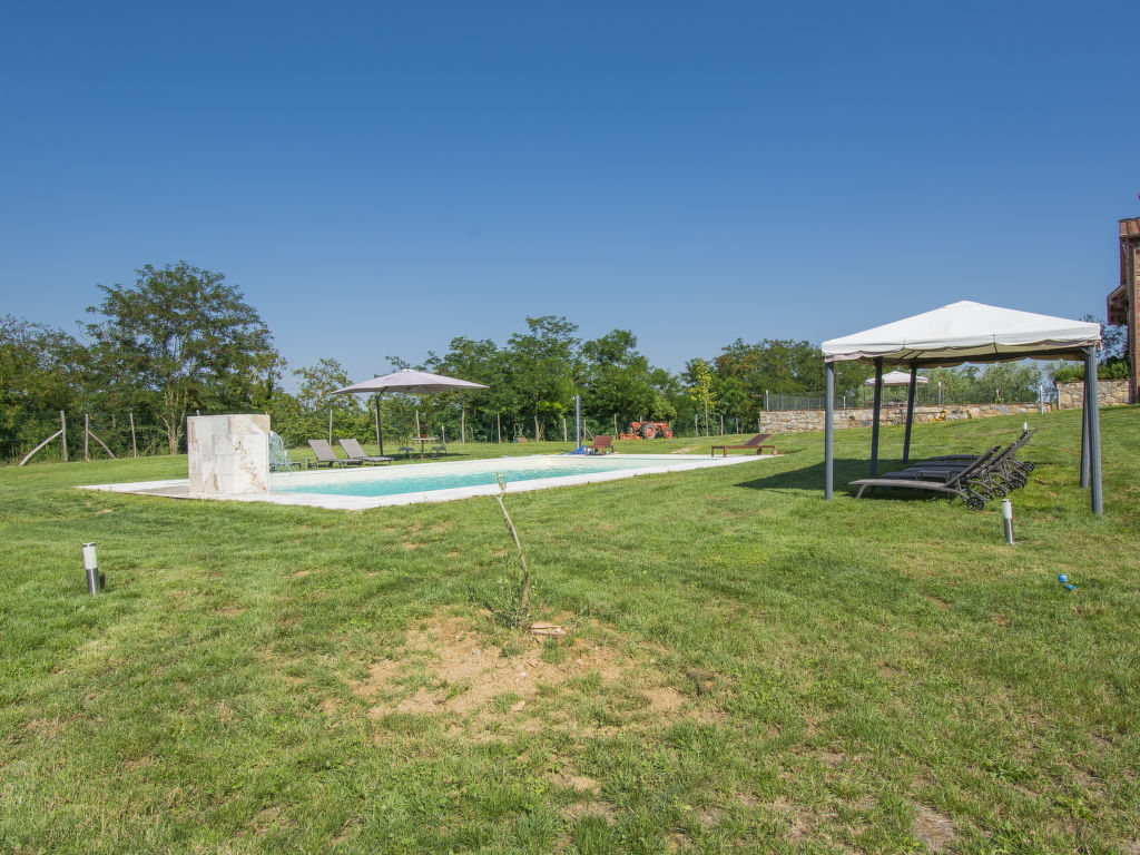 "Celeste", 8-Zimmer-Haus 370 m2 auf 2 Stockwerken. Antik und geschmackvoll eingerichtet: Wohnzimmer mit offenem Kamin, Sat-TV und Stereoanlage. Ausgang zur Terrasse. 1 Doppelzimmer mit Dusche/WC. Ausgang zum Garten. Grosse Küche (Backofen, Geschirrspüler, 5 Flammen, Toaster, Wasserkocher, Mikrowelle, Tiefkühler, elektrische Kaffeemaschine) mit offenem Kamin und Esstisch. Ausgang zur Terrasse. Dusche/WC. Obergeschoss: 5 Doppelzimmer, jedes Zimmer mit Dusche/WC. 1 Zimmer mit 2 Betten und Dusche/WC. Heizung, Klimaanlage. Natursteinböden. Terrasse 160 m2, Terrasse 70 m2, überdacht. Terrassenmöbel, Gartengrill, Liegestühle (10), Abstellkammer. Schöne Panoramasicht auf die Landschaft. Zur Verfügung: Waschmaschine, Safe, Bügeleisen, Fliegengitter, Kinderhochstuhl, Babybett bis 2 Jahre. Internet (Wireless LAN, gratis). Bitte beachten: Nichtraucher-Unterkunft. Maximal 2 Haustiere/Hunde erlaubt.