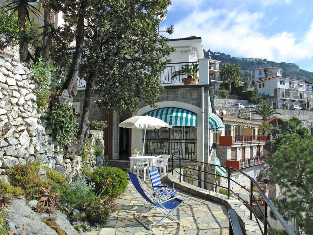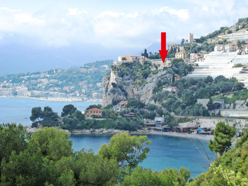 Dreifamilienhaus "Residence Gli Smeraldi". 8 km vom Zentrum von Ventimiglia, 2 km vom Zentrum von Menton (Côte d'Azur), 13 km vom Zentrum von Monaco, erhöhte Lage am Hang, in einem Wohnquartier, 1.5 km vom Meer, an einer Strasse. Treppenweg (50 Stufen) bis zum Haus. Supermarkt 400 m, Restaurant 500 m, Bar 300 m, Bahnstation "Menton" 2.5 km, Sandstrand 2.5 km, Kieselstrand 1.5 km. Jacht-Hafen 2 km, Golfplatz (18 Loch) 15 km. Nahe gelegene Sehenswürdigkeiten: Balzi Rossi. Bitte beachten: Eisenbahnlinie 100 m vom Haus.