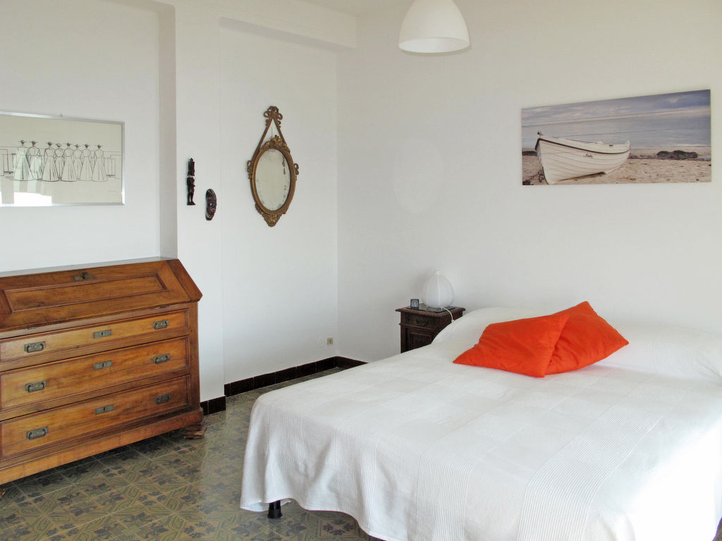 "Gli Smeraldi", 3-Zimmer-Wohnung 110 m2 im 1. Stock. Hell, zweckmässig eingerichtet: grosses Wohnzimmer mit Esstisch, Sat-TV und Stereoanlage. Ausgang zur Terrasse. 2 Zimmer, jedes Zimmer mit 2 Betten (80 cm). Küche (Backofen, Geschirrspüler, 4 Flammen, Toaster, Tiefkühler, elektrische Kaffeemaschine) mit kleinem Esstisch. Dusche/WC, sep. WC. E-Heizung, G-Heizung, Klimaanlage. Terrasse 45 m2. Terrassenmöbel, Liegestühle (3), Abstellkammer. Sehr schöne Sicht auf das Meer und die Bucht. Zur Verfügung: Waschmaschine, Bügeleisen. Internet (Wireless LAN, gratis). Parkplatz (1 Auto) in 100 m. Bitte beachten: Nichtraucher-Unterkunft. Eigener Eingang. CITRA: 008065-LT-0048