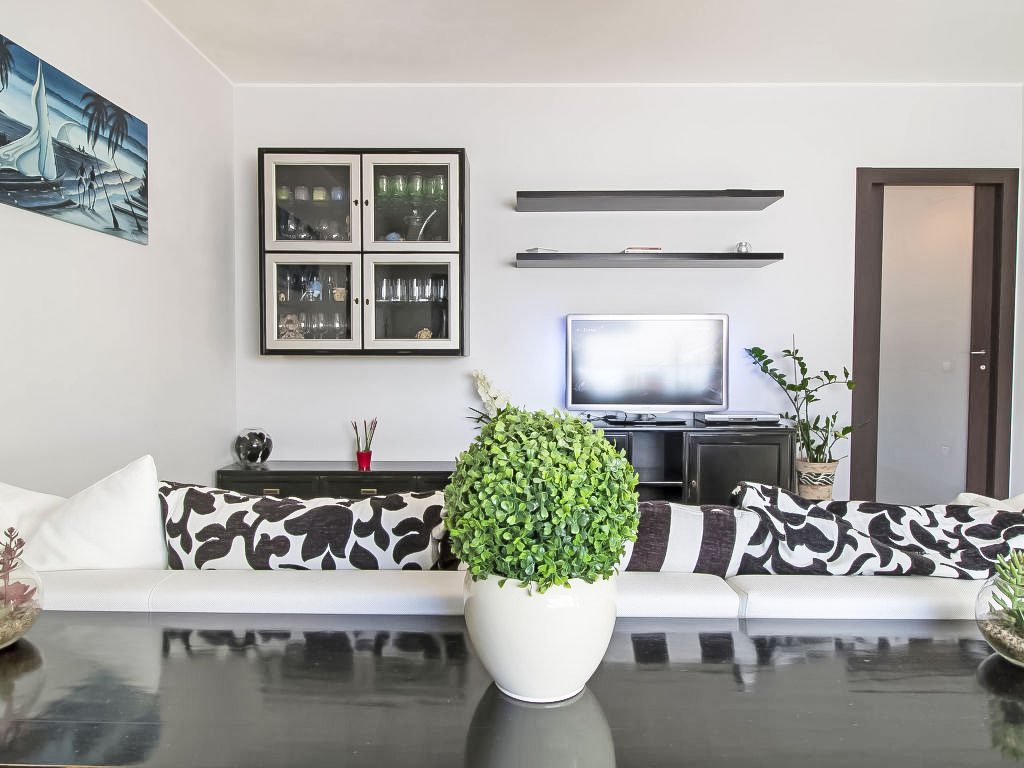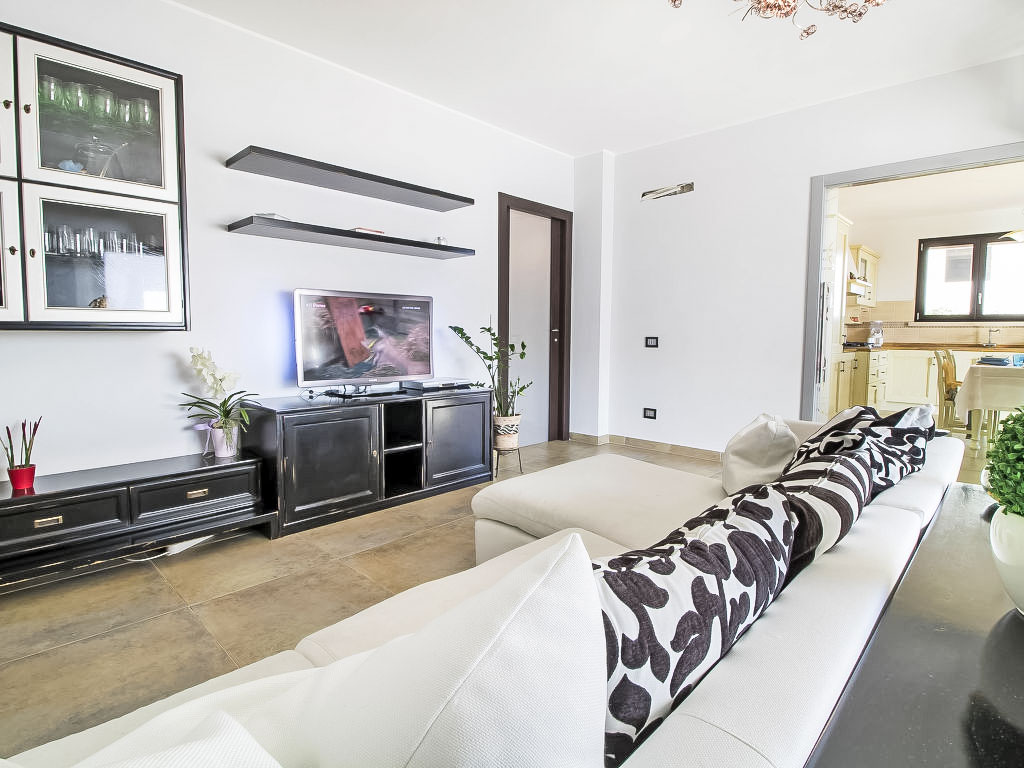 4-Zimmer-Haus 130 m2. Geräumig, sehr komfortabel und modern eingerichtet: grosses Wohnzimmer mit Digital-TV und Flachbildschirm. Ausgang zum Garten. 1 Doppelzimmer mit TV. 1 Zimmer mit 2 Betten und TV. 1 Zimmer mit 1 Bett, 1 Ausziehbett und TV. Küche (5 Kochplatten, Backofen, Geschirrspüler, Mikrowelle, Tiefkühler) mit Esstisch und TV. Dusche/Bidet/WC, Doppelwaschbecken. Gartensitzplatz, Garten, Laube. Terrassenmöbel, Loggia. Zur Verfügung: Waschmaschine (extra). Bügeleisen, Fliegengitter, Kinderhochstuhl, Haartrockner. Internet (Wireless LAN, gratis). Bitte beachten: der Besitzer nutzt gelegentlich die untere Etage des Hauses, mit separaten Zugang.