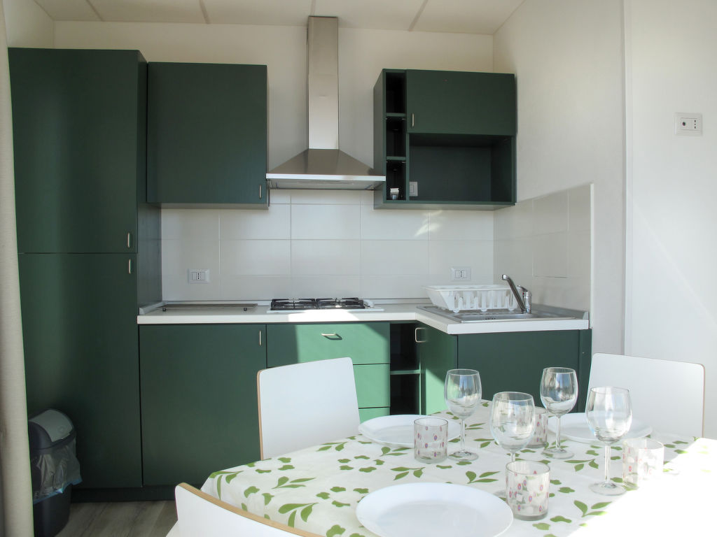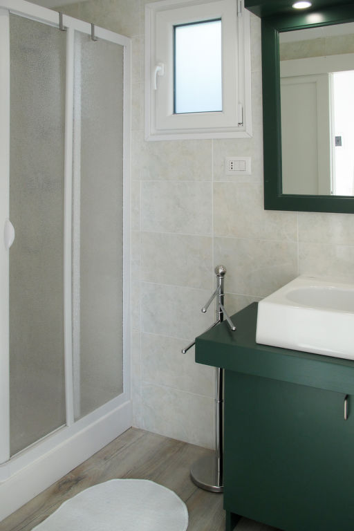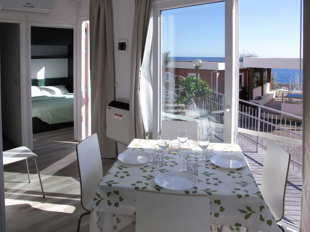 "Gelsomino (SLR403)", 3-Zimmer-Bungalow 36 m2. Hell, modern eingerichtet: 1 Zimmer mit 1 franz. Bett (160 cm). 1 Zimmer mit 2 Betten (80 cm). Wohnküche (4 Flammen, Toaster, Mikrowelle, Tiefkühler, elektrische Kaffeemaschine) mit Esstisch. Ausgang zur Terrasse. Dusche/WC. Heizung, Klimaanlage. Terrasse. Terrassenmöbel, Liegestühle (2). Eingeschränkte Sicht auf das Meer. Zur Verfügung: Kinderhochstuhl, Babybett. Parkplatz (1 Auto). Bitte beachten: Nichtraucher-Unterkunft. Maximal 1 Haustier/Hund erlaubt. CITR: 008054-CAM-0002