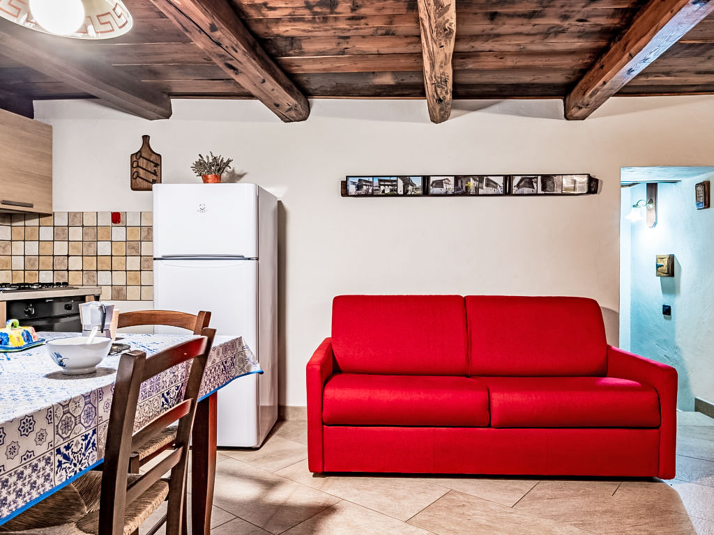 2-Zimmer-Wohnung 42 m2, im Erdgeschoss. Renoviert im Jahre 2015, komfortabel und mit viel Holz eingerichtet: Wohn-/Esszimmer mit 1 Doppeldiwanbett (140 cm), Esstisch und TV (Flachbildschirm). 1 Zimmer mit 1 franz. Bett. Kochnische (Backofen, 4 Flammen, Wasserkocher, Mikrowelle, Tiefkühler). Dusche/Bidet/WC. G-Heizung. Zur Verfügung: Waschmaschine. Parkplatz.