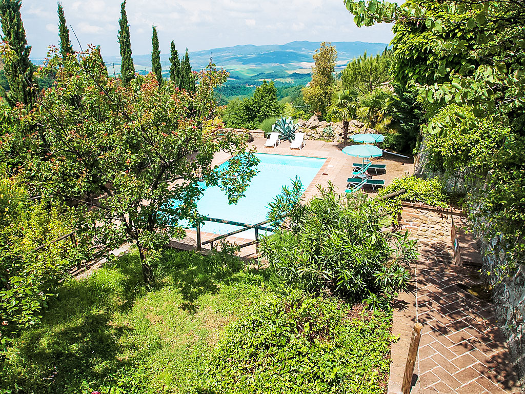 Kleines alleinstehendes Rustico, umzäunt, an ausgesprochener Panoramalage, umgeben von Weinreben, Olivenhainen und Kastanienbäumen. In der Region wurden zahlreiche etruskische Funde getätigt. Nur 40 km vom Meer entfernt. Ideal für alle, die die Natur und die Ruhe lieben. Grosszügiger Garten, mit Tischen und Kinderspielplatz ausgestattet. Umzäunter und ausgestatteter Platz (16 x 20 m) mit grosser Laube, welche über einen eingebauten Holzofen verfügt. Die Gäste können zudem eine weitere grosse Laube benutzen, welche sich auch bestens eignet, um im Freien zu essen. Sie geniessen von dort aus die Sicht auf das Schwimmbecken und das Tal. Gemütliches, einfaches Einfamilienhaus "Le Pergole". 1.5 km vom Zentrum von Volterra, ruhige, sonnige Lage, im Grünen. Zur Alleinbenutzung: Grundstück (eingezäunt), Garten, Schwimmbad (6 x 12 m, 140 - 180 cm tief, 02.05.-14.10.). Tischtennis, Sitzplatz, Terrasse, Gartenmöbel, Grill. Im Hause: Wireless LAN, Waschmaschine. Wäschewechsel 1 mal wöchentlich (zusätzlich extra). Zufahrt (200 m Naturweg). Parkplatz auf dem Grundstück. Einkaufsgeschäft 1.5 km, Restaurant 1.5 km, Bushaltestelle 1 km, Bahnstation 10 km. Tennis 3 km, Reitstall 10 km. Nahe gelegene Sehenswürdigkeiten: San Gimignano 30 km, Siena 60 km, Firenze 70 km.