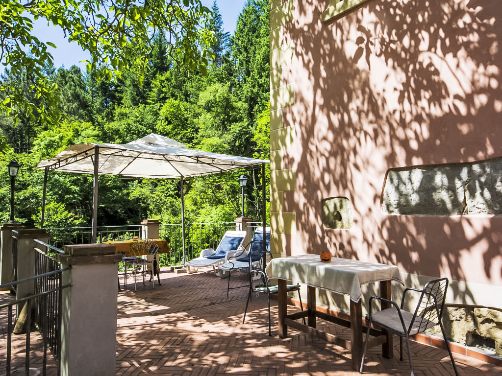 Ehemalige Mühle aus dem 17. Jh., vollständig restauriert, in aussichtsreicher Lage. Mitten im Grünen und mit Blick auf einen Wasserfall und den Fluss, wo man sich abkühlen kann. Im beheizten und gedeckten Schwimmbad (30 m2, ganzjährig geöffnet) mit Sicht auf das alte Mühlrad, ist es möglich, bereits in sehr kühler Jahreszeit zu baden. Nach einer Wanderung durch den Wald (1 km) erreicht man Loro Ciuffenna, mit sämtlichen Dienstleistungen. Ideale Ausgangslage für Trekking und Mountain-Bike-Touren. Auf Wunsch werden die Gäste ins Bogenschiessen und in Entspannungstechniken eingeführt. Ruhiger Ort abgesehen vom Wasserfall, den man je nach Wetterlage gut hört. Windmühle "Il Mulinaccio". 3 Wohnungen im Ferienhaus. 1 km vom Zentrum von Loro Ciuffenna, 28 km vom Zentrum von Arezzo, 30 km vom Zentrum von Siena. Zur Mitbenutzung: Grundstück (eingezäunt), Garten, Hallenbad beheizt (50 - 135 cm tief, saisonale Verfügbarkeit: 01.Jan.-31.Dez.) mit Innentreppe. Ungleichmässige Schwimmbadform, Gartenmöbel, Grill. Im Hause: Wireless LAN, Zentralheizung, Waschmaschine (zur Mitbenutzung), Heizung vor Ort zu zahlen, Heizung nur verfügbar von 01.11. bis 15.04.. Wäschewechsel 1 mal wöchentlich. Wohnungsreinigung möglich (extra). Koch möglich (extra). Parkplatz beim Haus. Lebensmittelgeschäft 1.5 km, Restaurant 2 km, Bahnstation "Montevarchi" 12 km. Tennis 12 km. Nahe gelegene Sehenswürdigkeiten: Castelfranco di Sopra 19 km, Reggello 24 km, Arezzo 31 km, Abbazia di Vallombrosa 35 km, Bibbiena, Greve in Chianti 41 km, Monte San Savino 50 km.