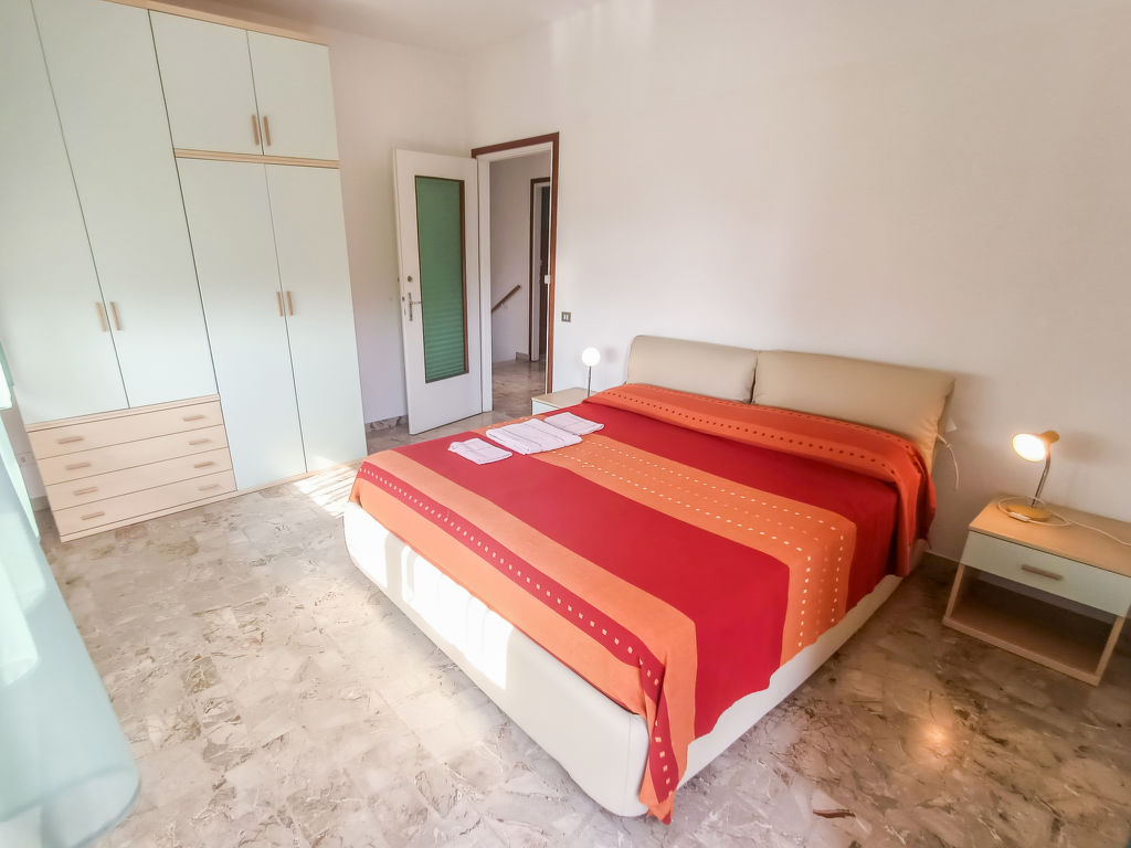 4-Zimmer-Wohnung 95 m2 im 1. Stock. Zweckmässig und gemütlich eingerichtet: grosses Wohn-/Esszimmer mit TV. Ausgang zur Terrasse. 1 Zimmer mit 2 Betten. 1 Doppelzimmer mit Dusche/WC. 1 Doppelzimmer. Ausgang zur Terrasse. Kochnische (4 Kochplatten, Mikrowelle, Tiefkühler, elektrische Kaffeemaschine). Dusche/Bidet/WC. Terrasse 40 m2 teilweise überdacht. Terrassenmöbel, Liegestühle (2). Fernsicht auf den See und die Berge. Zur Verfügung: Haartrockner. Internet (Wireless LAN, gratis). Bitte beachten: TV nur DE. CIR:012092-CIM-00039