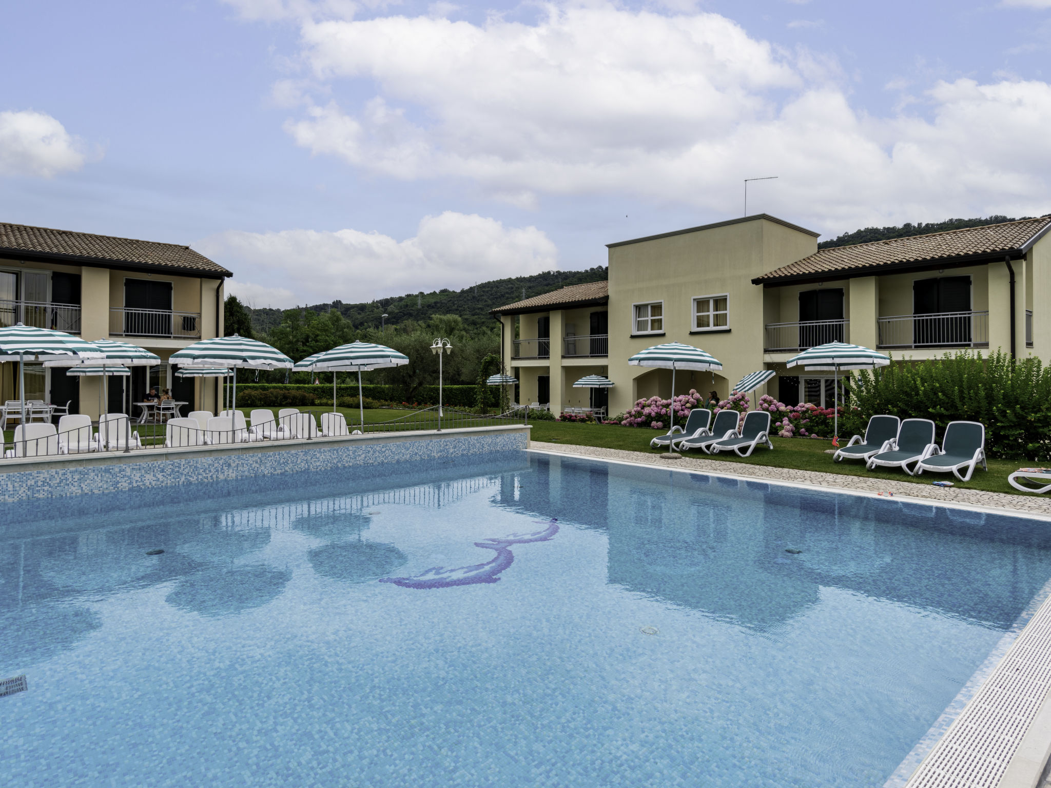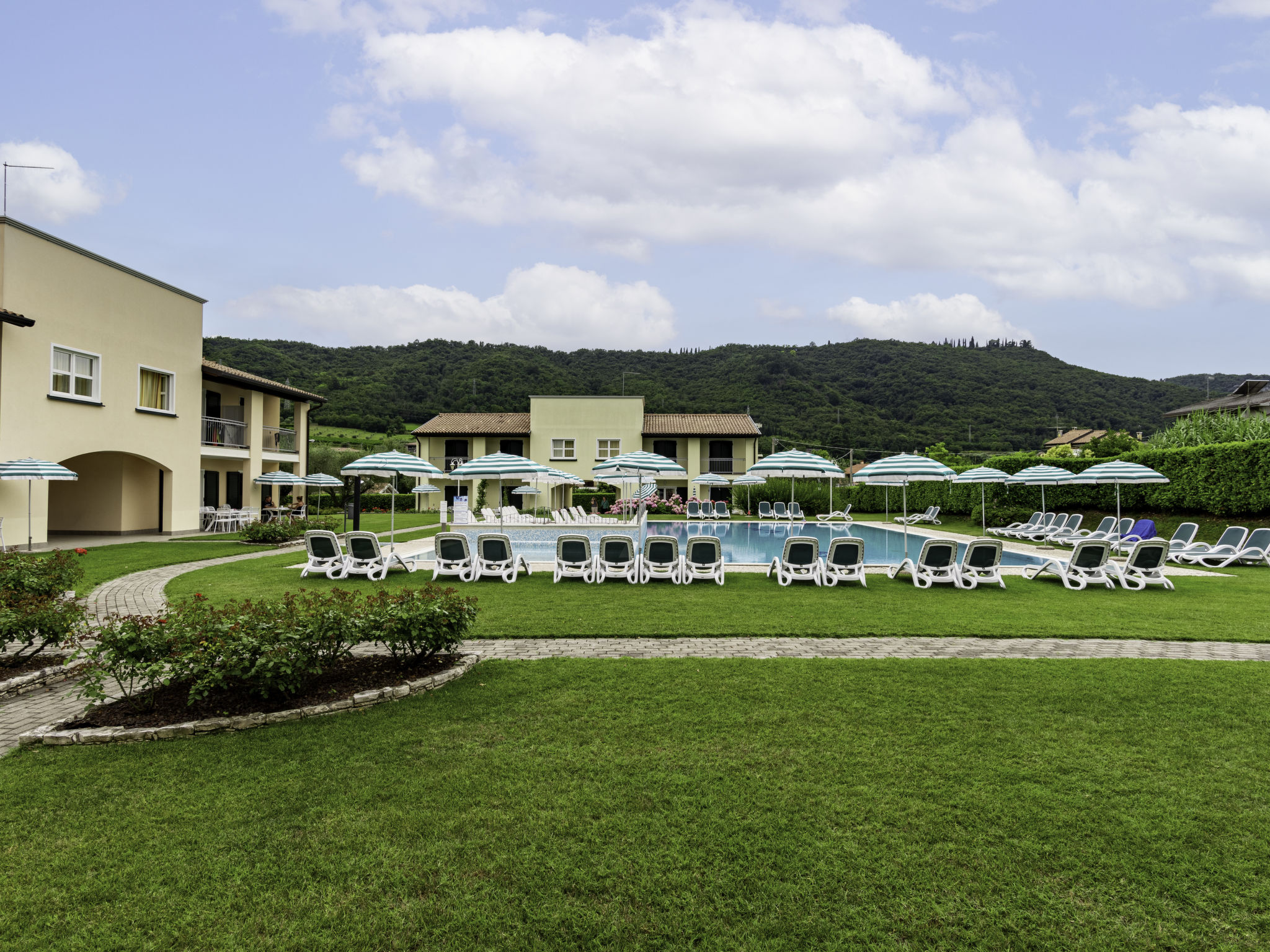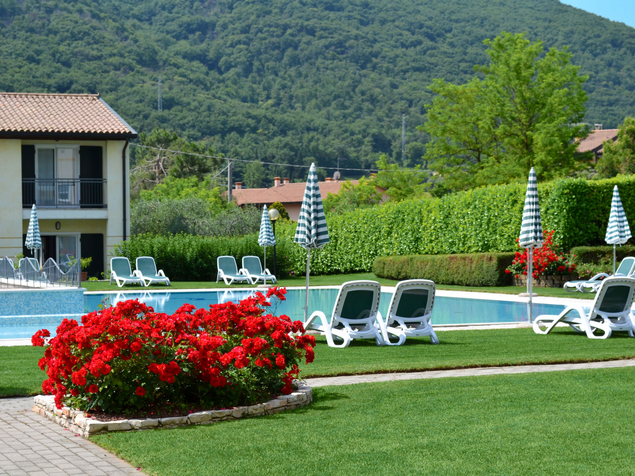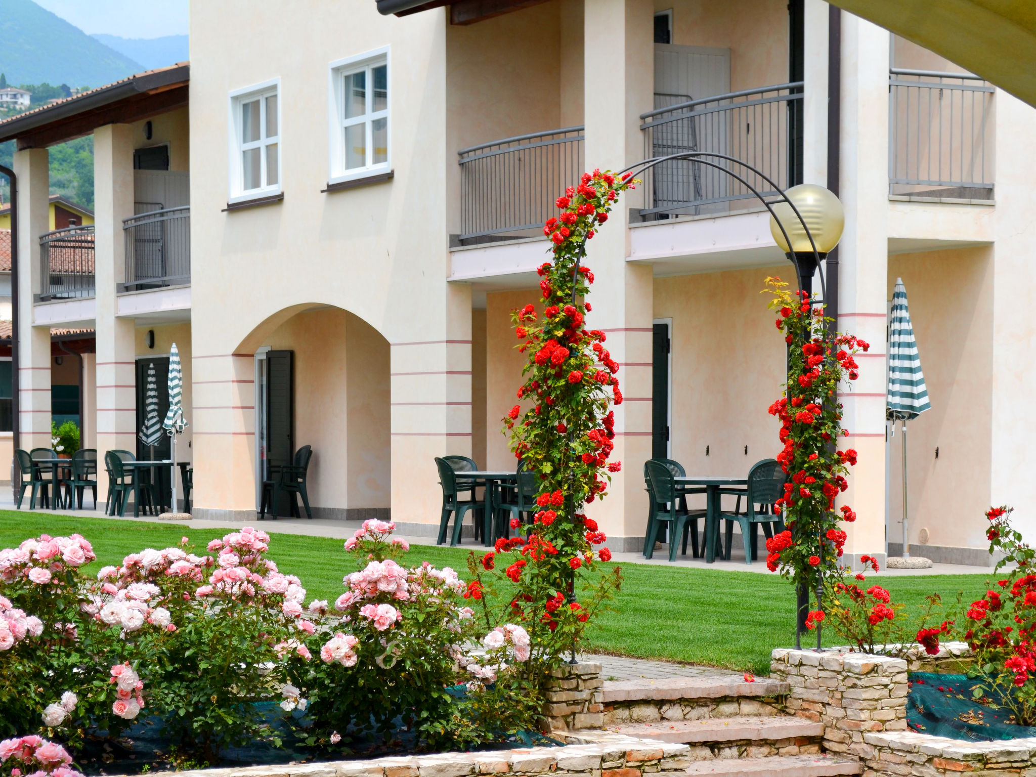 Ferienanlage "Corte delle Rose", auf 2 Stockwerken. 16 Wohnungen in der Residenz. Im Ortsteil Giare, 2 km vom Zentrum von Garda, 2 km vom See. Zur Mitbenutzung: schöner, gepflegter Garten (eingezäunt) mit Rasen und Blumen, Schwimmbad (20 x 10 m, saisonale Verfügbarkeit: 01.Jan.-31.Dez.). Kinderbecken, Aussendusche, Laube, Grill, Kinderspielplatz. In der Anlage: Tischtennis, Tischfussball, Waschmaschine (zur Mitbenutzung, extra). Restaurant 50 m, Bushaltestelle 10 m. Golfplatz (18 Loch) 5 km. Nahe gelegene Sehenswürdigkeiten: Peschiera del Garda 19 km, Verona 38 km.