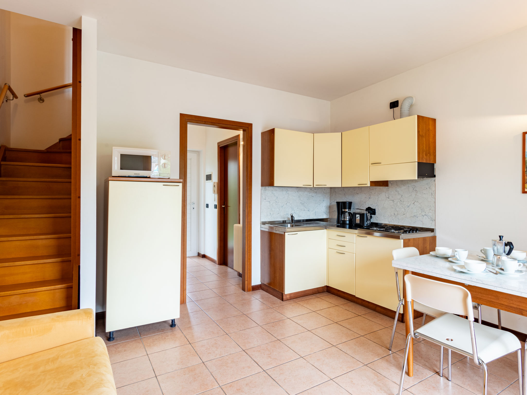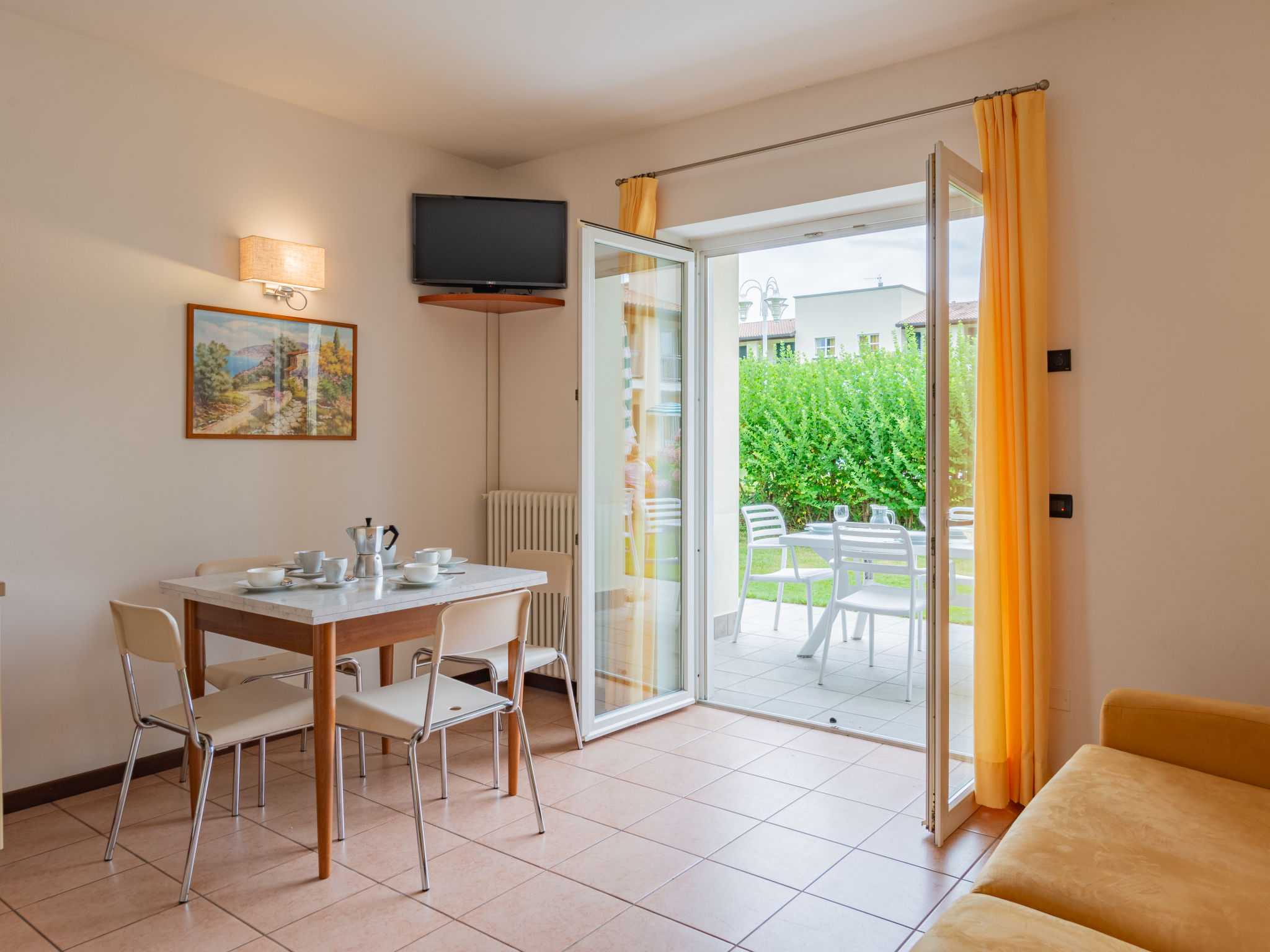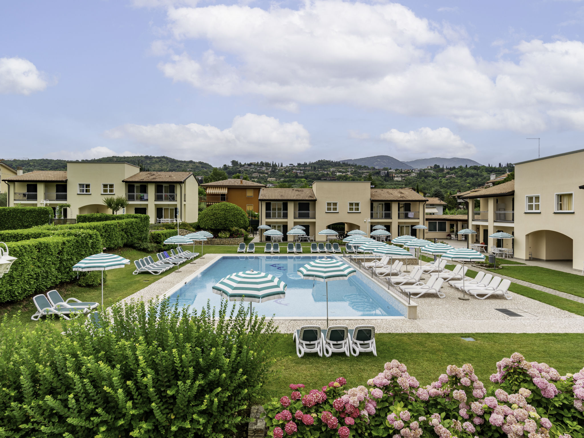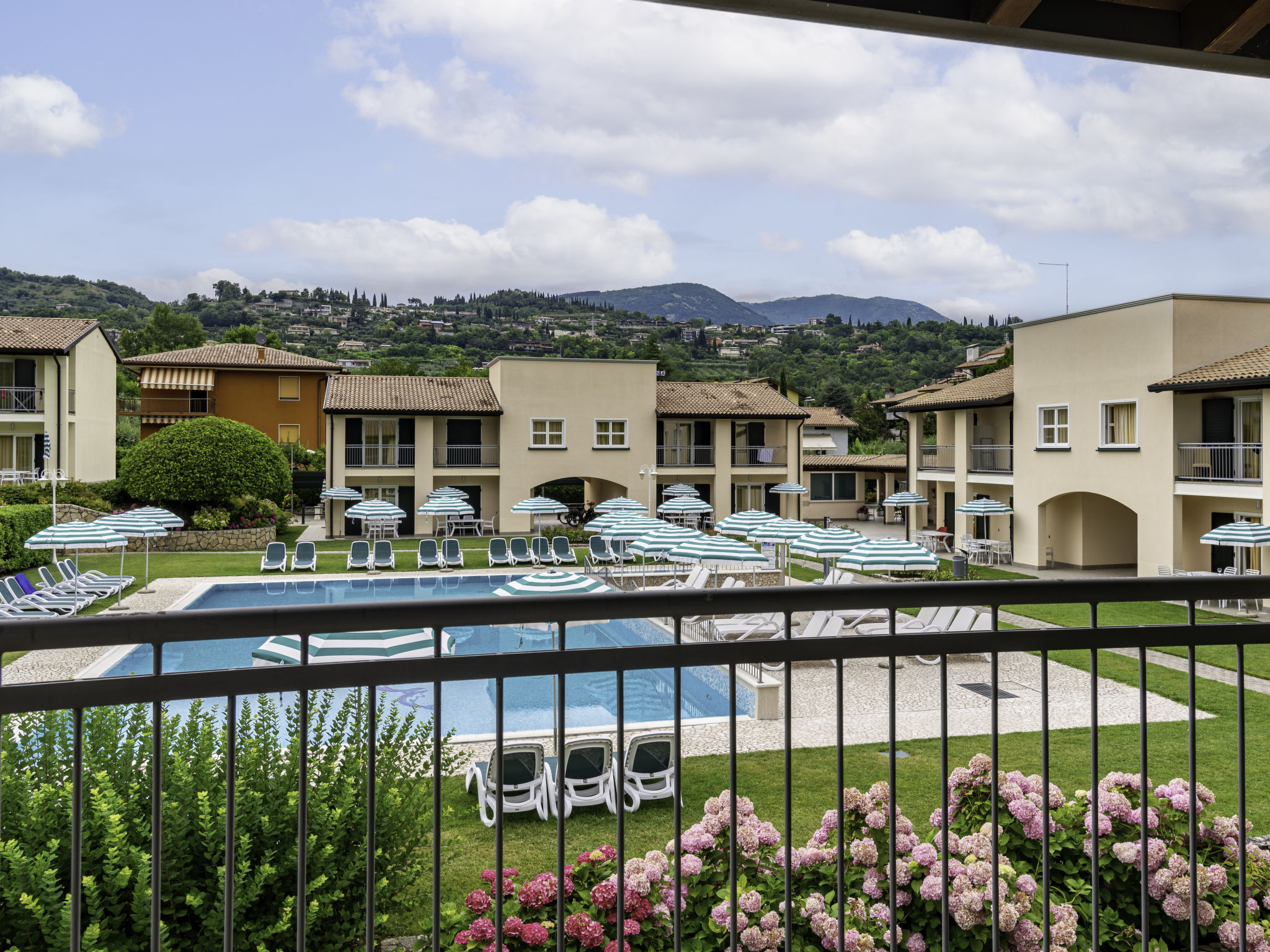 Ferienanlage "Corte delle Rose", auf 2 Stockwerken. 16 Wohnungen in der Residenz. Im Ortsteil Giare, 2 km vom Zentrum von Garda, 2 km vom See. Zur Mitbenutzung: schöner, gepflegter Garten (eingezäunt) mit Rasen und Blumen, Schwimmbad (20 x 10 m, saisonale Verfügbarkeit: 01.Jan.-31.Dez.). Kinderbecken, Aussendusche, Laube, Grill, Kinderspielplatz. In der Anlage: Tischtennis, Tischfussball, Waschmaschine (zur Mitbenutzung, extra). Restaurant 50 m, Bushaltestelle 10 m. Golfplatz (18 Loch) 5 km. Nahe gelegene Sehenswürdigkeiten: Peschiera del Garda 19 km, Verona 38 km.