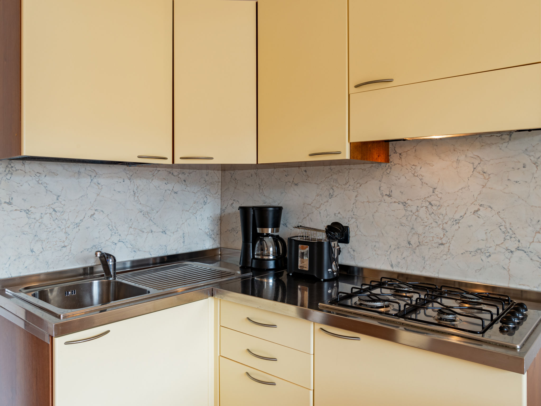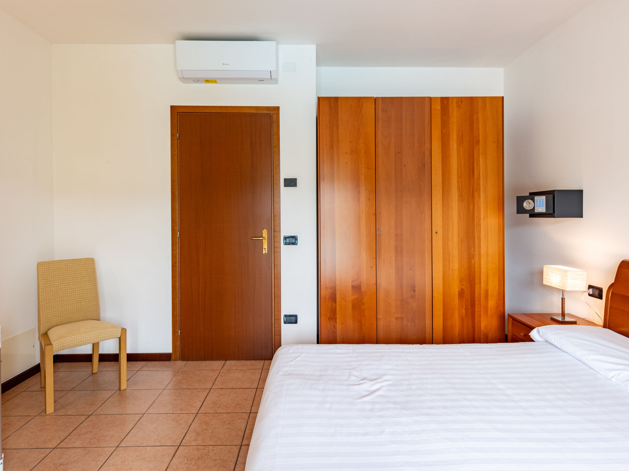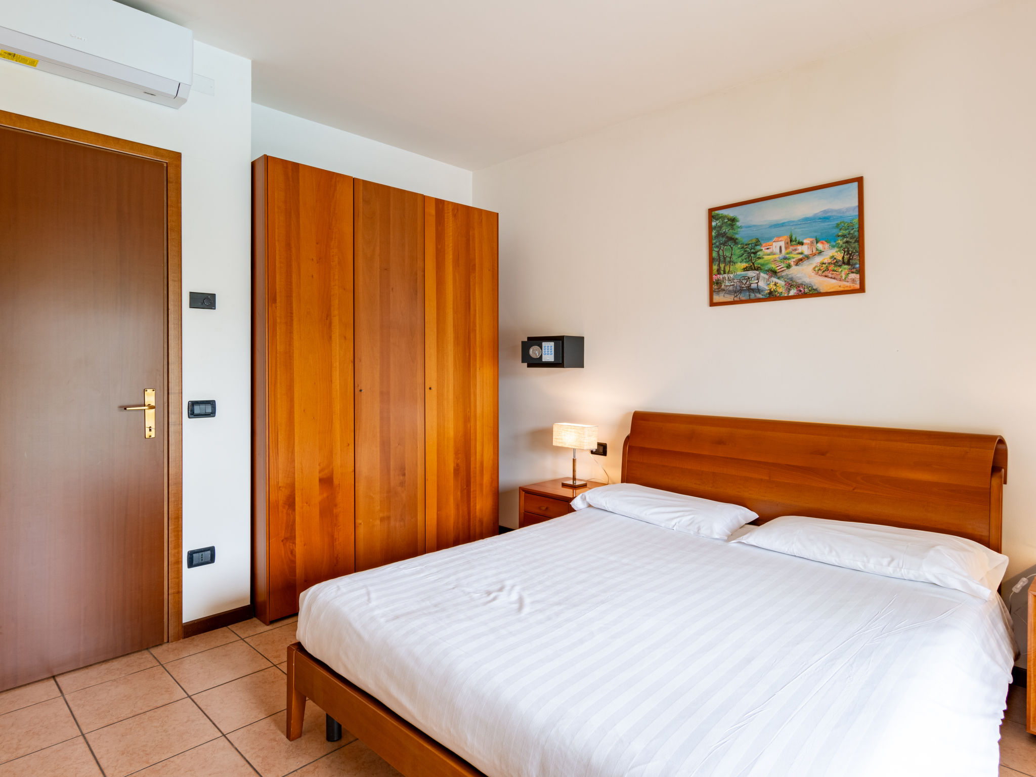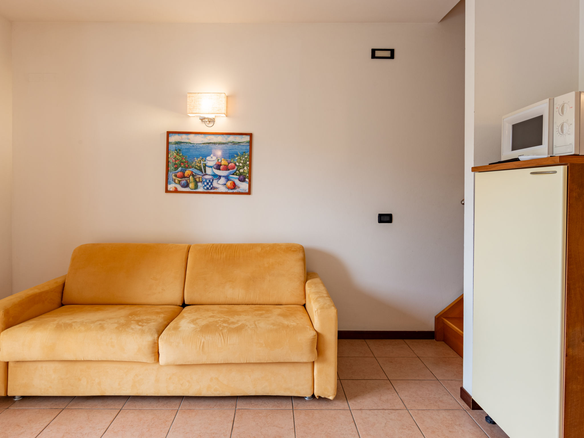 2-Zimmer-Wohnung 50 m2 auf 2 Stockwerken. Komfortabel eingerichtet: Wohn-/Schlafzimmer mit 1 Doppeldiwanbett, Esstisch und Sat-TV. Ausgang zur Terrasse, zum Schwimmbad. Offene Küche (Gasherd, 4 Flammen, Toaster, Mikrowelle, Tiefkühler, elektrische Kaffeemaschine). Sep. WC. Obergeschoss: 1 Doppelzimmer mit Klimaanlage. Ausgang zum Balkon. Dusche/Bidet/WC. G-Heizung. Balkon, Terrasse überdacht. Terrassenmöbel, Abstellkammer. Sicht auf das Schwimmbad und den Garten. Zur Verfügung: Safe. Internet (Wireless LAN, gratis). Parkplatz (1 Auto). Bitte beachten: Nichtraucher-Unterkunft. Eigener Eingang.