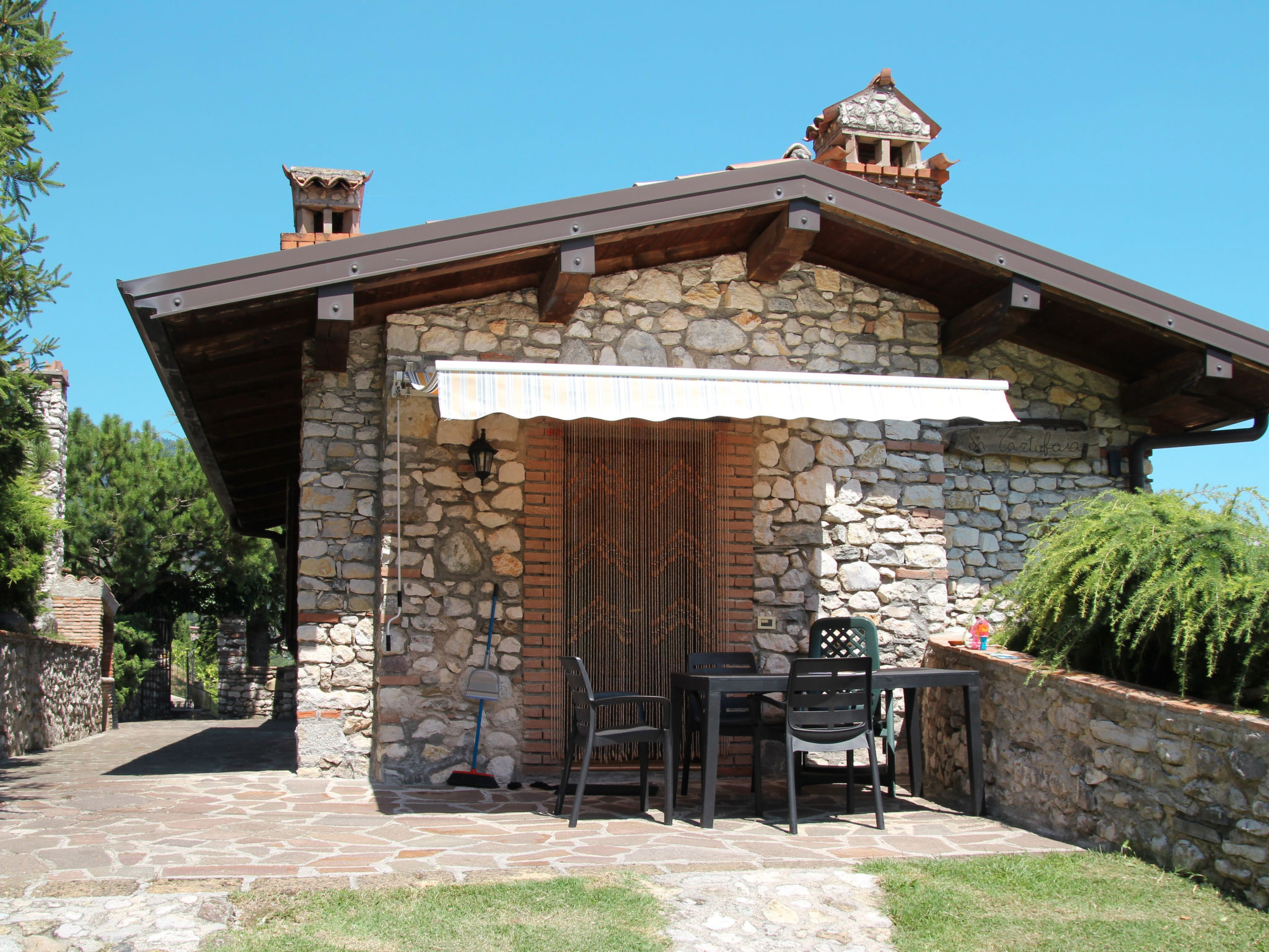 LA TARTUFAIA, ein kleines aktives Landgut mit vier Wohnhäusern in typischer Steinbauweise, steht im Ortsteil Voiandes. Vesio 1 km. Einkaufsmöglichkeit und See bei Limone, je 10 km. Parkplätze. Teilweise umzäuntes, naturbelassenes Wiesengrundstück mit herrlichem Blick auf die Landschaft. Elektrisches Einfahrtstor. In der Anlage Trüffel-Produktion. Die Vermieter verkaufen Olivenöl, Wein und Salami. Pool (12 x 4 m, ca. 15.05.-01.10.) mit Liegewiese, Sonnenschirmen und Liegestühlen. Gemauerter Grill zur gemeinsamen Nutzung. Fitnessraum. Kinderspielgeräte. Gemeinschaftswaschmaschine (€ 3/Waschgang). Internetzugang (WLAN, inklusive) im Poolbereich sowie an der Rezeption. Im Haupthaus befinden sich die Rezeption und die Wohnung der Vermieter. Die Wohnungen TMO 100/102/108 liegen in einem Gebäude in Hanglage am Eingang der Anlage. Die Wohnungen TMO 101/103/104 liegen in einem Reihenhaus unterhalb des Pools. Die Wohnungen TMO 105/106 befinden sich in einer restaurierten Häuserreihe, ca. 80 m vom Pool entfernt, an einer ruhigen, wenig befahrenen Straße außerhalb des Grundstücks, mit direktem Zugang zu der Anlage. Die Wohnung TMO 107 befindet sich in einem Haus in Hanglage gegenüber vom Pool. Unterhalb dieser Wohnung befindet sich der Fitnessraum. Ansprechende Einrichtung. Fliesenböden. Sat-TV. Internetzugang (WLAN, inklusive), Empfang in allen Wohnungen außer TMO 105 (nur im Pool- und Rezeptionsbereich). Gas-Zentralheizung. Hinweis: Rauchen ist im Haus und in den Wohnungen nicht gestattet.