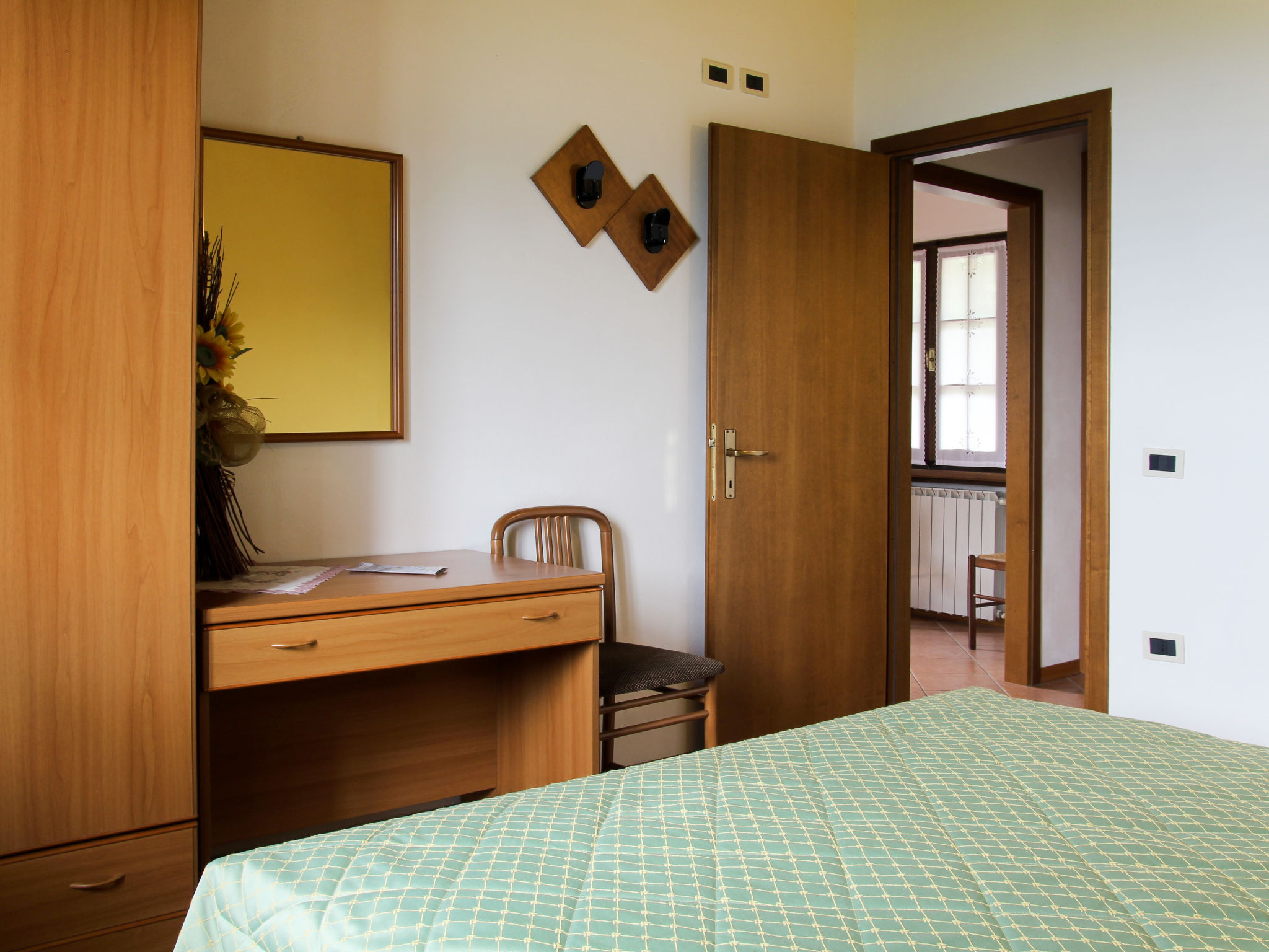 2-Zimmer-Wohnung, Erdgeschoss (Hanglage), ca. 32 m². Wohn-/Schlafraum mit Doppelbettcouch, Essplatz, Küchenzeile (2 Flammen, Kühlschrank, Kaffeemaschine). Doppelzimmer. Dusche/WC. Möblierter Freisitz mit Sonnenmarkise. 017189-AGR-00001 D00113